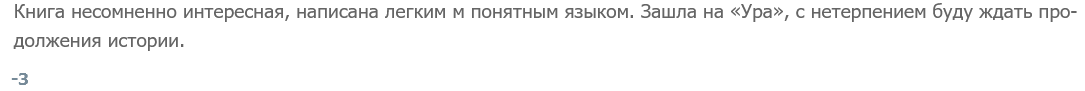 И хорошенько обмазавшись таким негативом по самые уши, я бы хотел предложить вам поиграть в игру. Угадайте с трёх раз чей это комментарий. Бота или живого человека? Книга под которой я нашёл это скопище "счастливых читателей" попалась мне на глаза случайно. Аннотация, как под копирку для любитилей боярки. Да и прочее всё по канону "жанра". Но вот отзывы...тут, конечно поработал "профессионал"