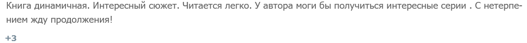 Ну и заглянув в другие комменты этих "читателей" можно увидеть копию одного и того же отзывы по несколькими разными книгами. Магия? Но за накрутками и использованием ботоферм внимательно следит администрация. Так что, ничего такого быть не может! Всё это просто игра))