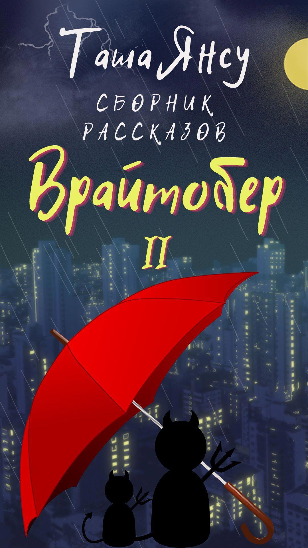 "Врайтобер-2" - сборник рассказов; нсд в этом году я не участвовала во врайтобере, но у меня накопилось много рассказов, слишком коротких, чтобы удостоиться отдельной обложки, потому я решила собрать их в кучу; эта обложка особенно мне нравится, потому что хорошо сочетается с обложкой моего первого сборника - там тоже кот с зонтом под дождем, но здесь больше зловещести, как вы могли заметить, но все в порядке, т.к и рассказы здесь будут более дарковыми.