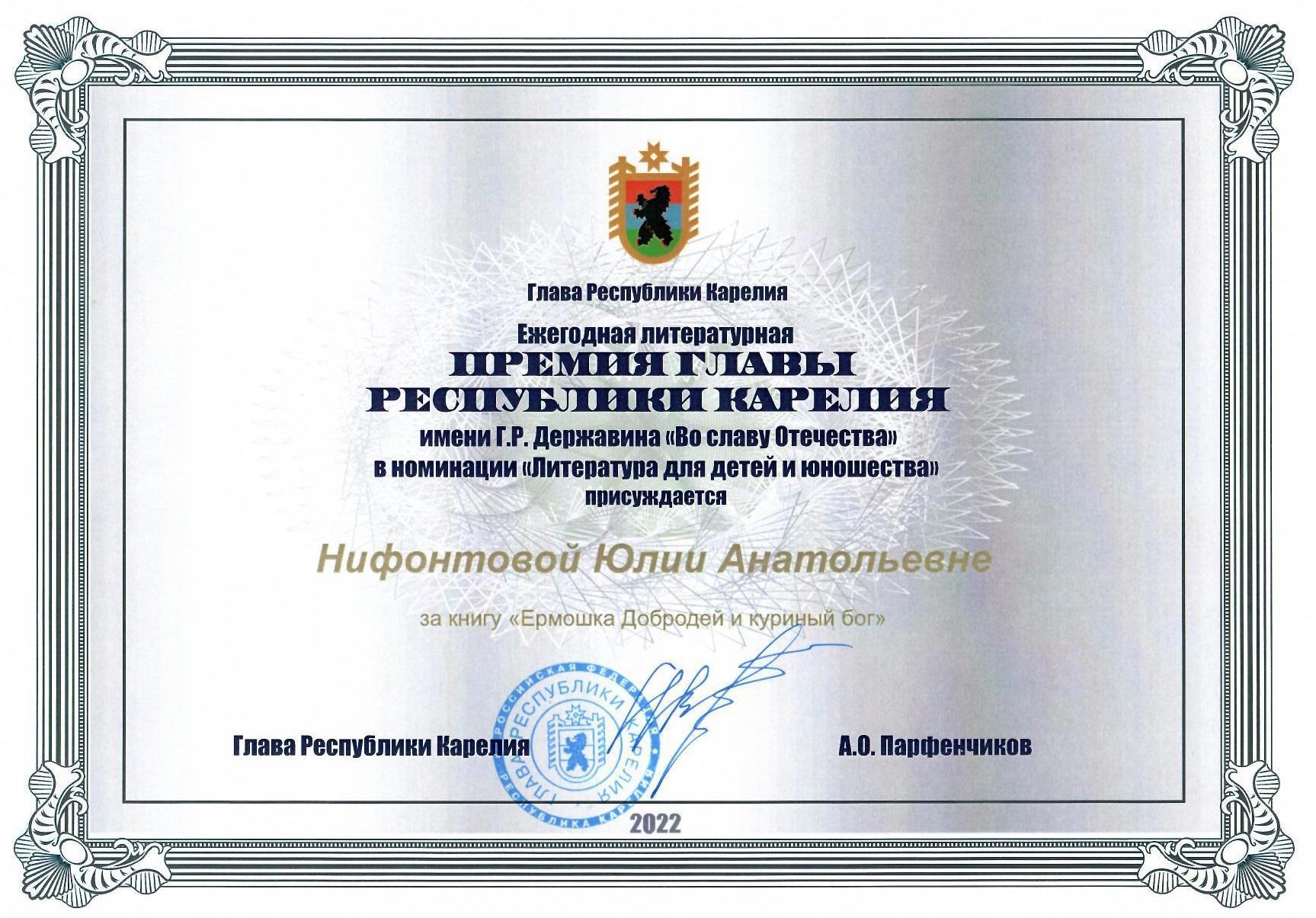 Самым важным событием для меня стало вручение Всероссийской премии имени Г.Р. Державина в номинации "Литература для детей и юношества".