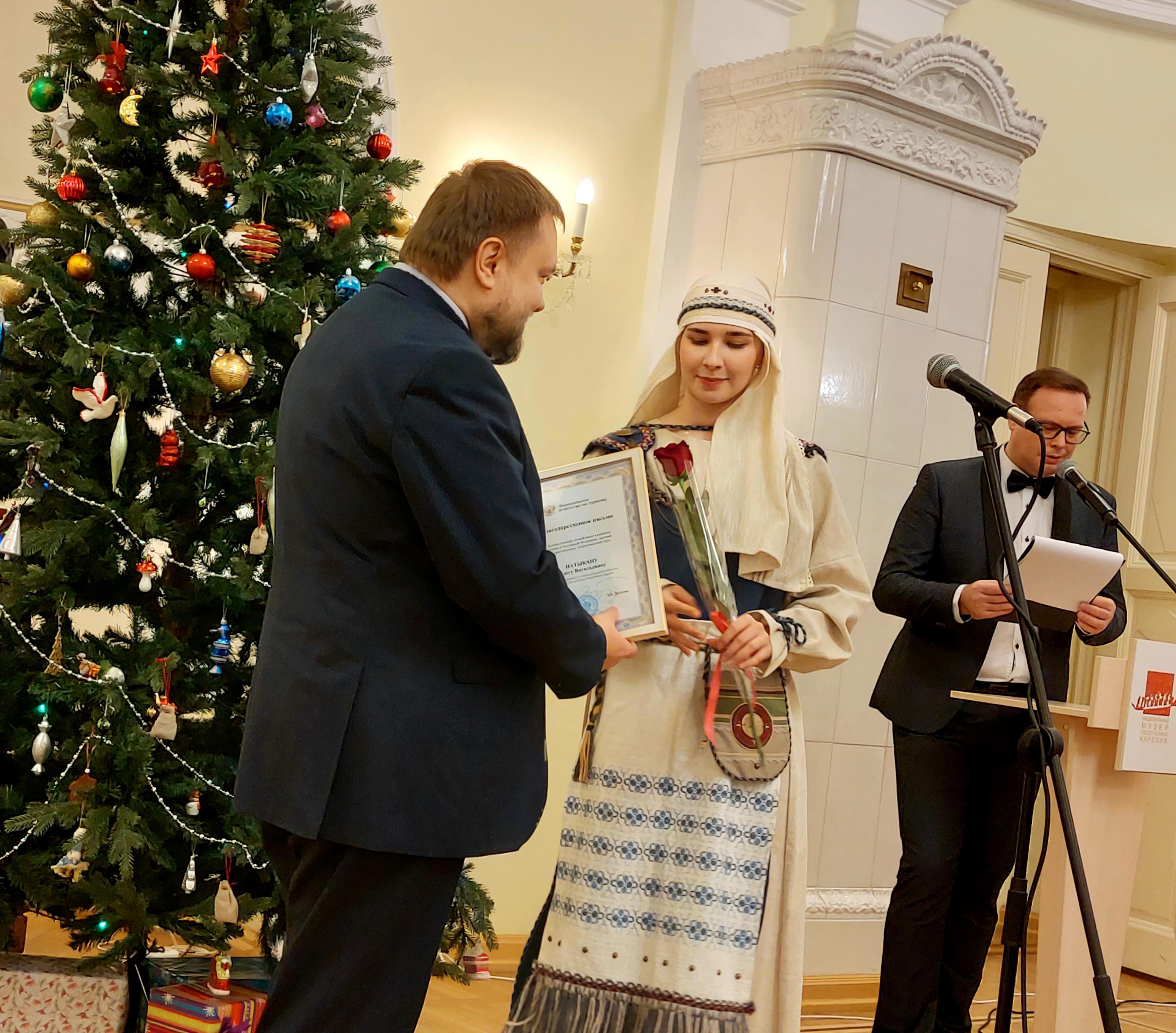 Премия была вручена в торжественной обстановке в Зале Благородного собрания Национального музея Республики Карелия (Петрозаводск). Нас лауреатов премии лично поздравил и вручил Дипломы молодой и обаятельный министр культуры Республики Карелия Алексей Лесонен.
