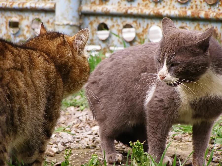 И после тишины - экспрессия. В битве пока перерыв, соперники обмениваются оскорблениями - пронзительными, угрожающими, понижая и повышая голоса... Такие картинки котов-драконов у меня есть, а вот снять котов в бою, это дело совсем нелёгкое, движутся они со скоростью звука))). Но посмотреть, как дерутся уличные бойцы, можно и на видео, а мне же хочется именно остановить мгновение, сделать одну, статичную, но полную экспрессии картинку.