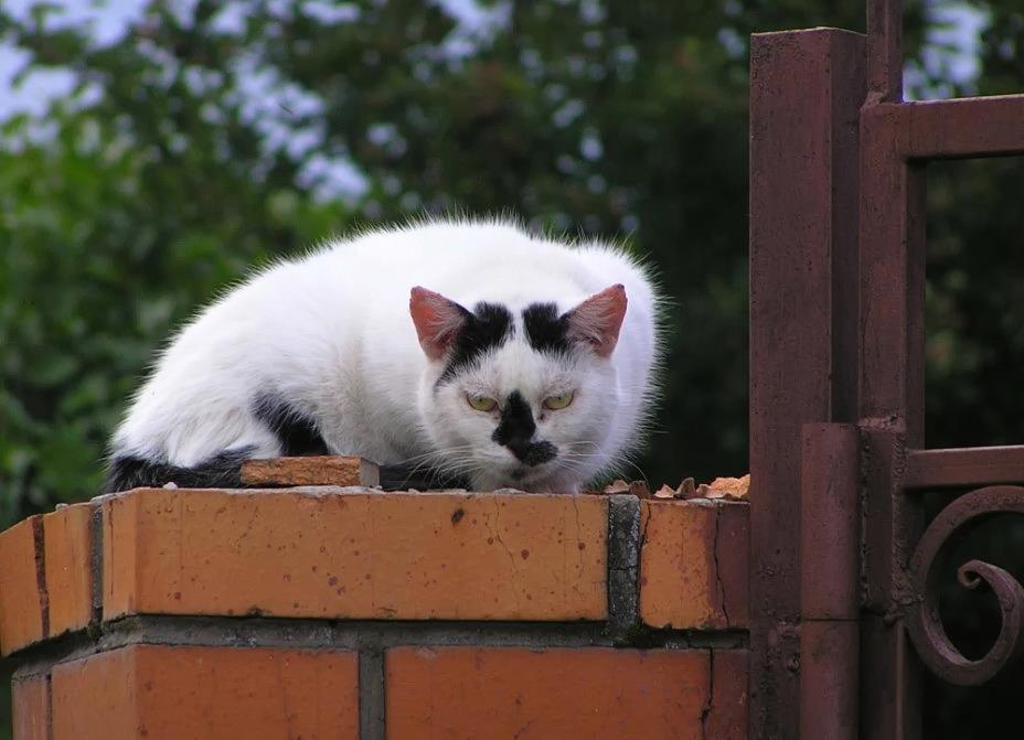 Коты заборов, крыш и ворот частных домов - отдельная группа. Встречаются среди них и горгульи) А что, если занимаешь место горгульи, будь добр (или - сердит?) сделай подобающее выражение шерстяного лица...