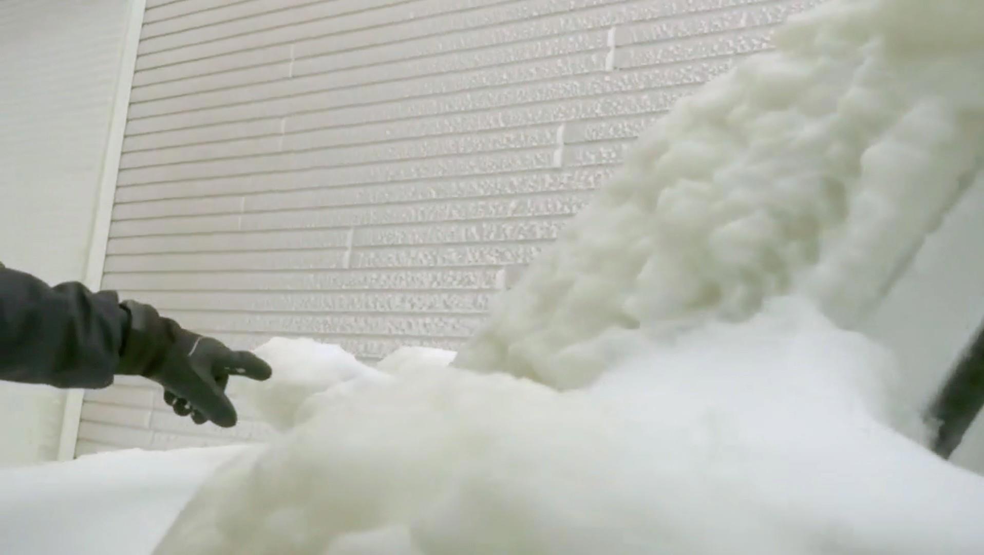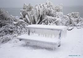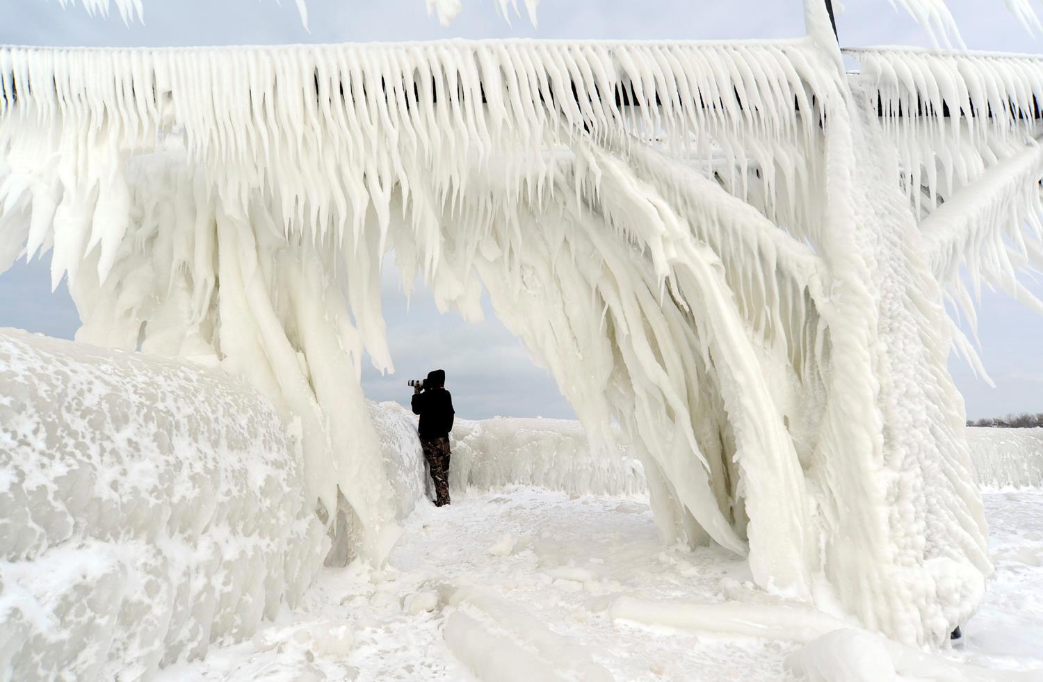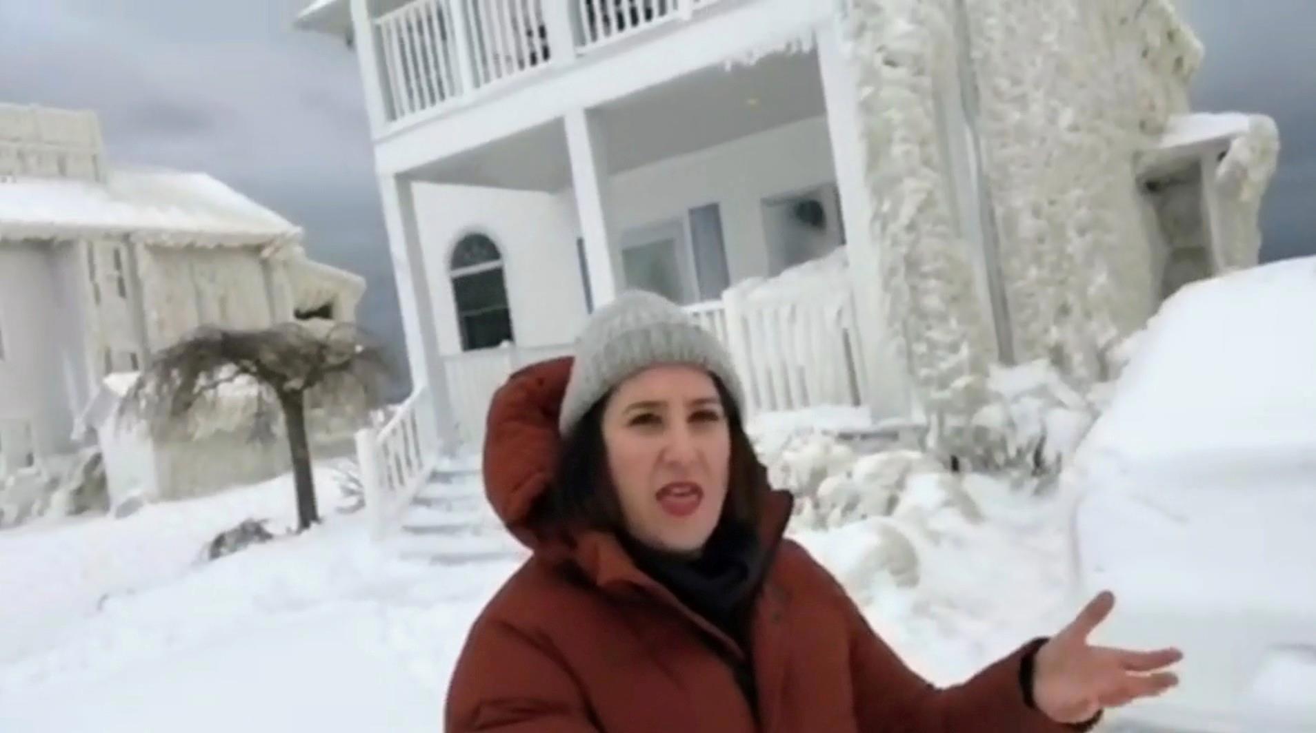 Сильный Ураган залил дома, а мороз их тут же заморозил.
