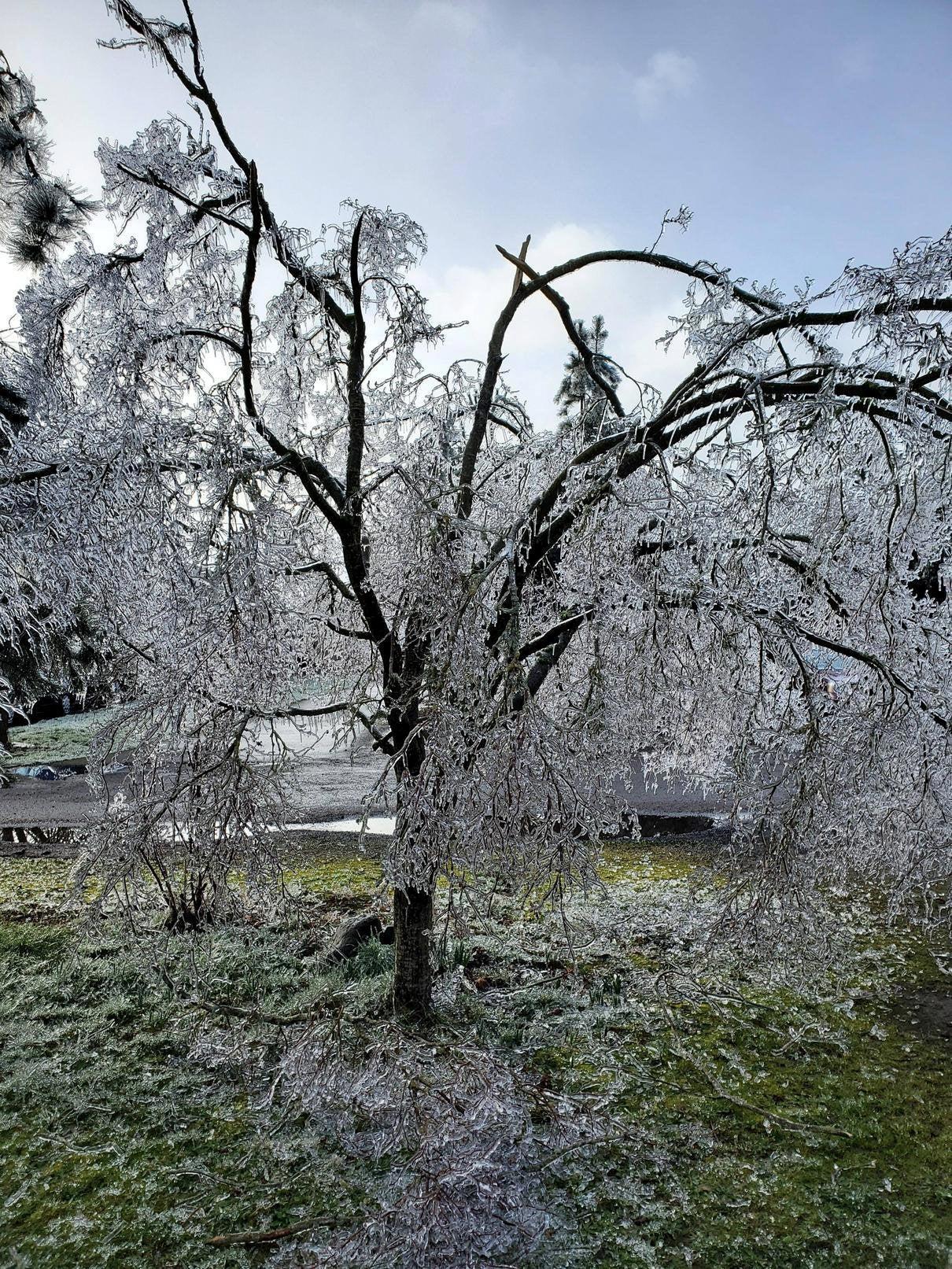 Но результатом обледенения стали тысячи сломанных деревьев :(