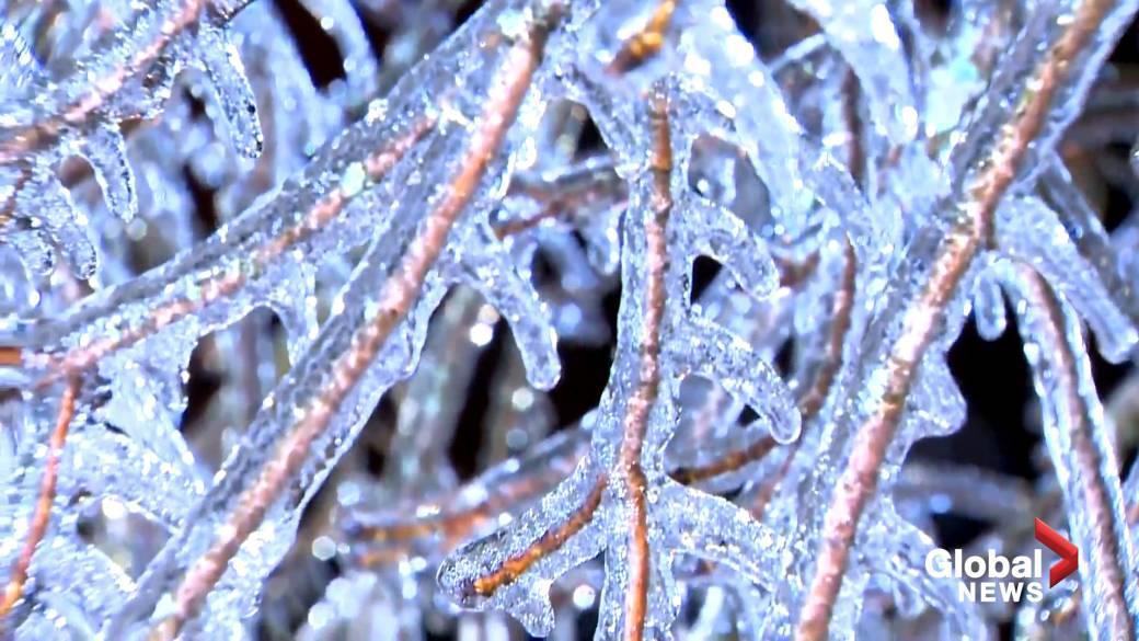 К сожаленью, эта красивая, сказочная хрустальная корочка была причиной не только красоты. Но и причиной потери электирического напряжения. Проводка в Канаде воздушная. И потяжелевшие деревья оборвали провода по всей Восточной Канаде, Онтарио Квебек, Атлантические провинции и штаты Северной Америки.