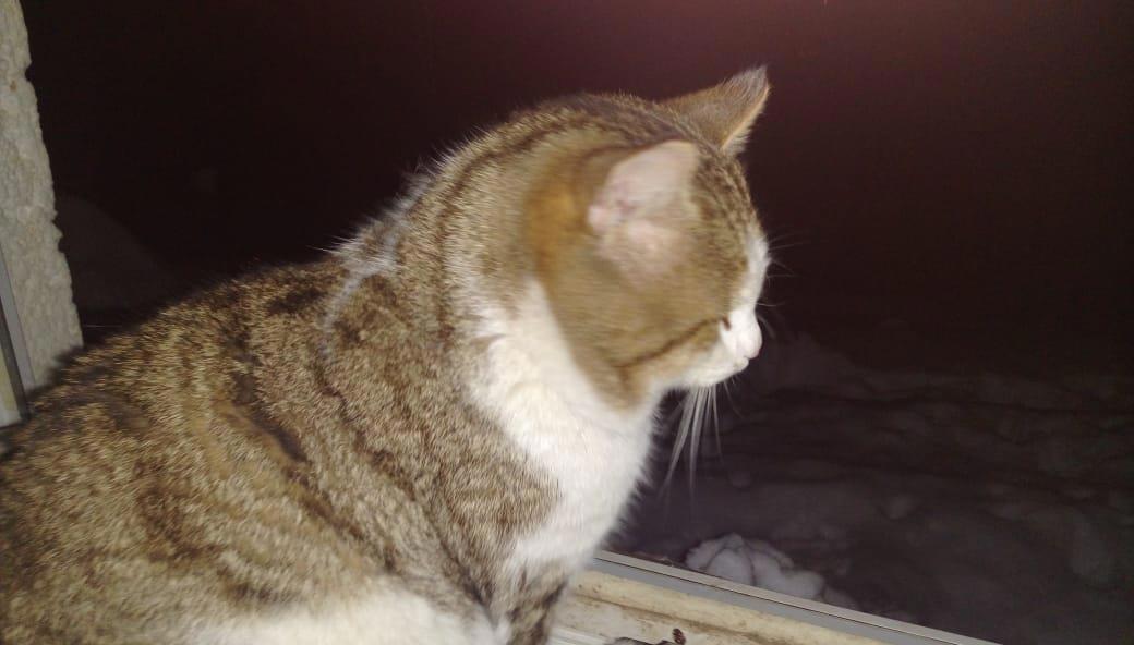 Хозяин очень простой человек. Уверяет, что кота кормит, а с собакой просто не кому гулять. К слову, выгул собак в поселке приветствуется только с поводком и ошейником. Тайсен далек от понятия "воспитанная собака", может кидаться, если ему кажется, что его отгоняют от еды. Барсик конечно по спокойнее) Ни на кого не бросается, просто грустно скребется в окно. Приходится кормить дальше.
