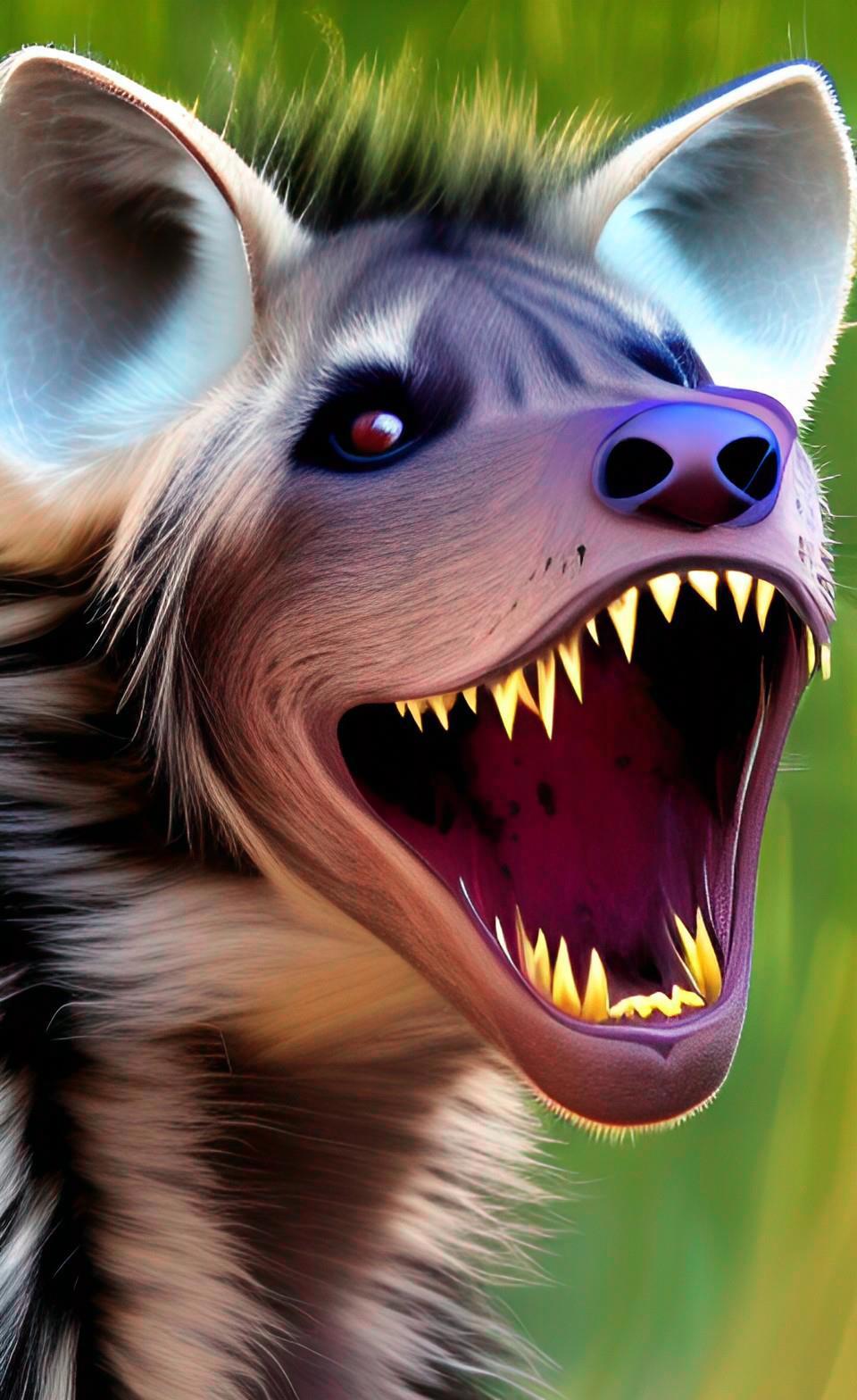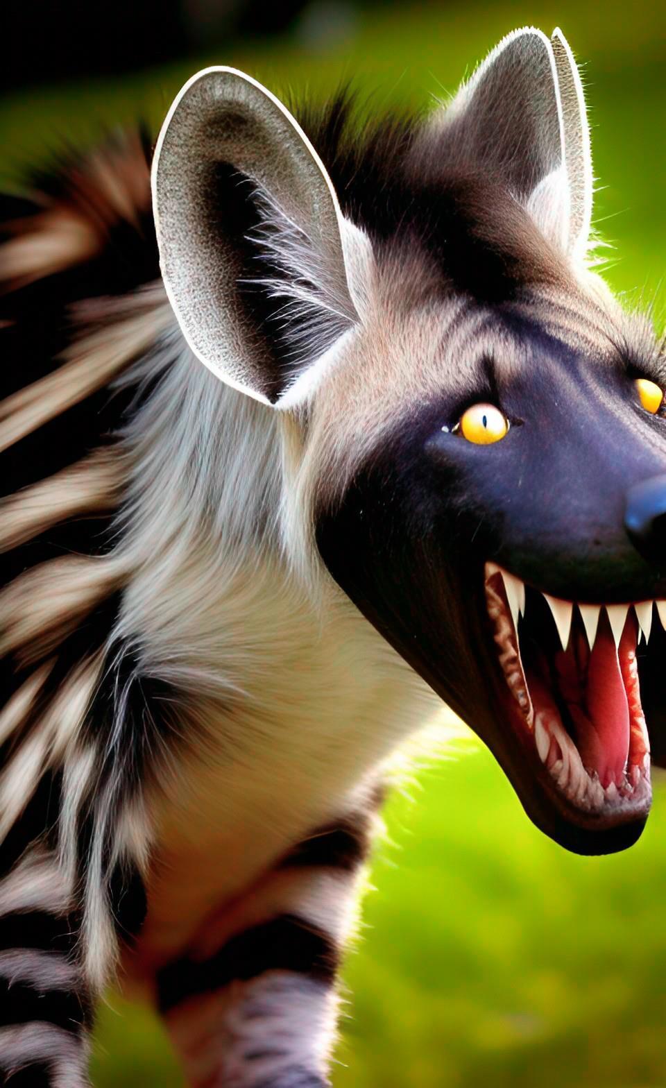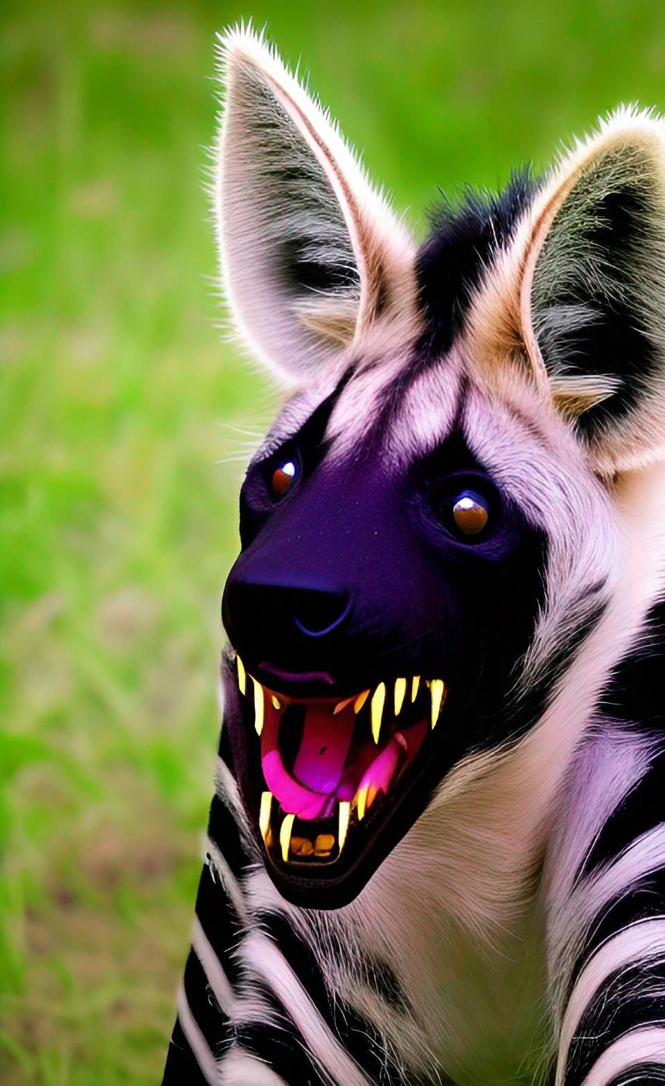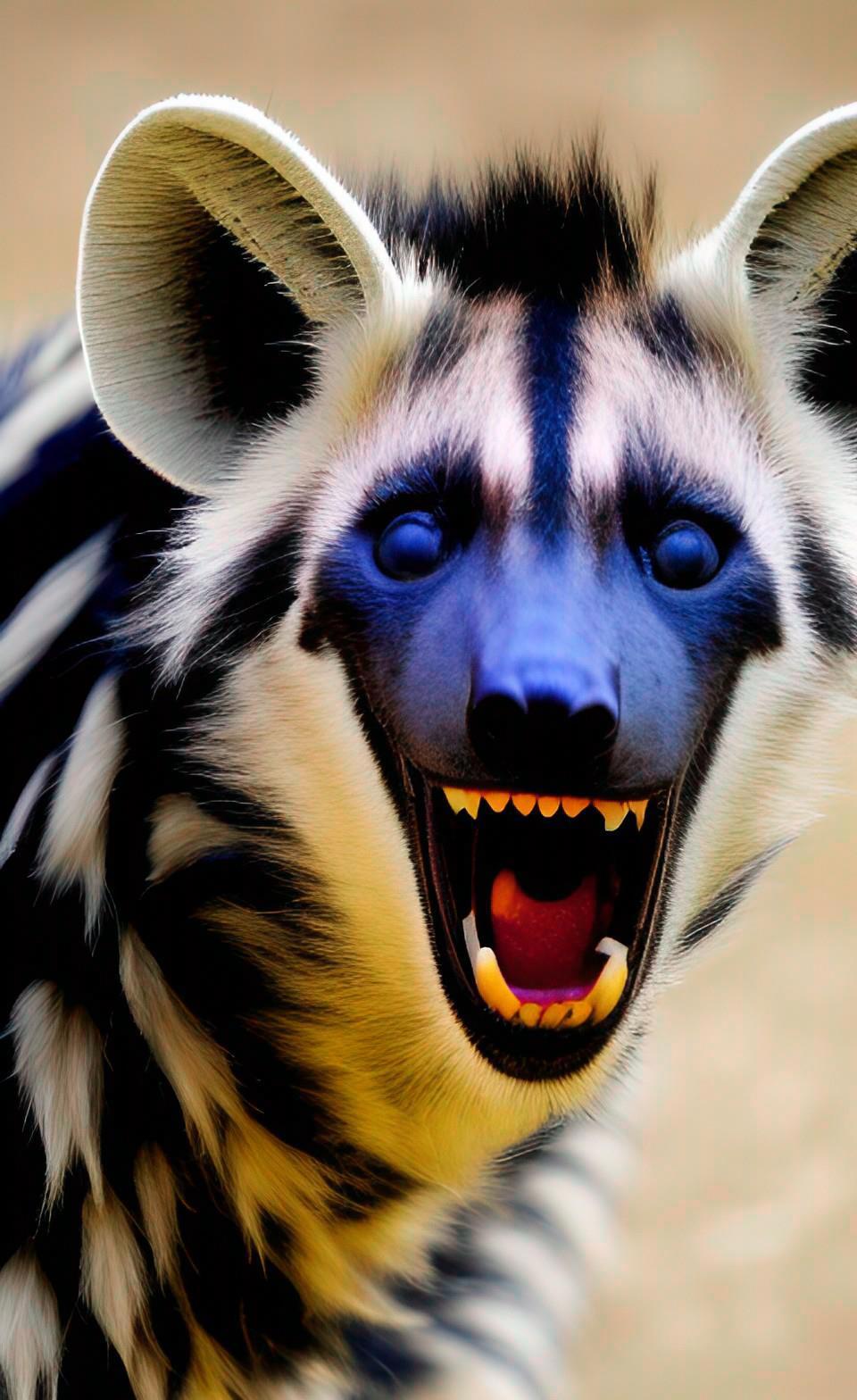 Я вбивал и просто «полосатая гиена», но там какие-то плюшевые няшки получались. Потом попробовал создать образ на основе реальных фотографий -- то же самое, только с контурами тела с фоток.