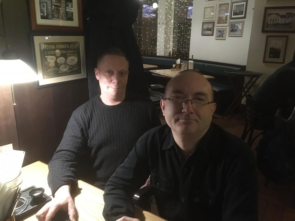 Тут днями заскочил на огонек из Черногории незаурядный писатель Кирилл Бенедиктов, он же беспощадный редактор и просто хороший человек, также известный в наших узких кругах как Падре Бене и Брат Бе. Посмотрите в холодные глаза двух этих компрачикосов отечественной словесности: вы можете воочию наблюдать тлеющий в этих взорах огонек стяжательства и щелкающие цифры, изображения лимона и знаки доллара.