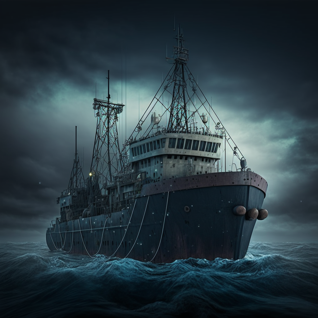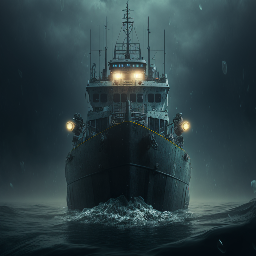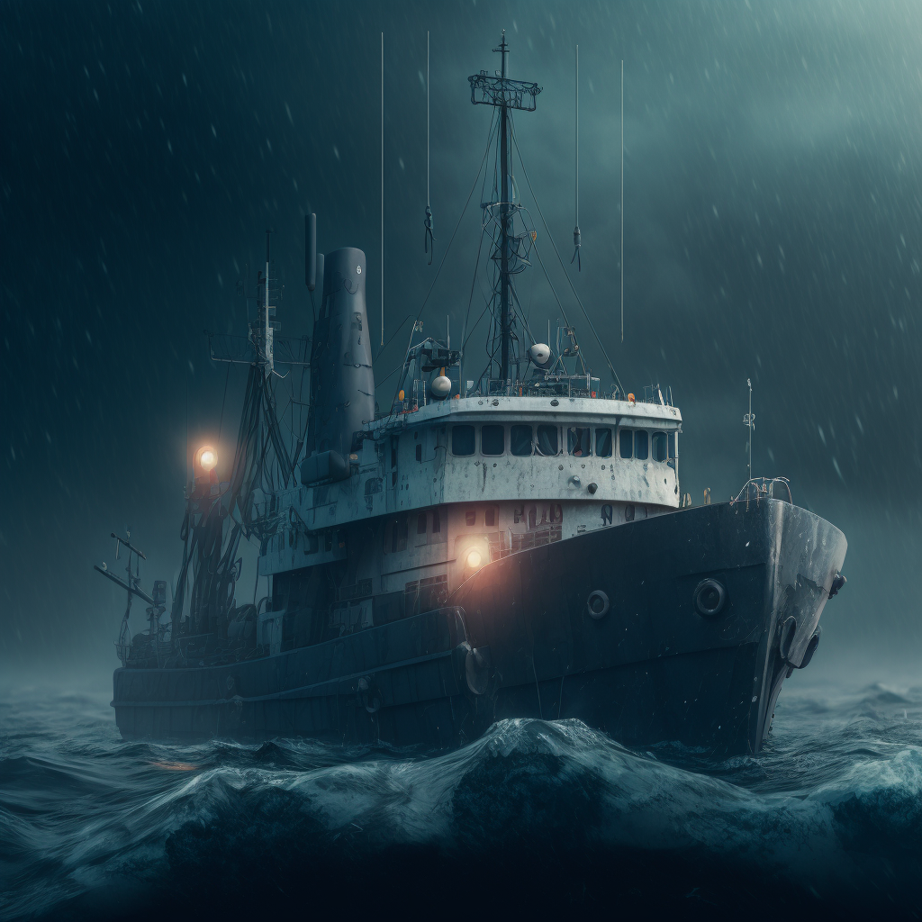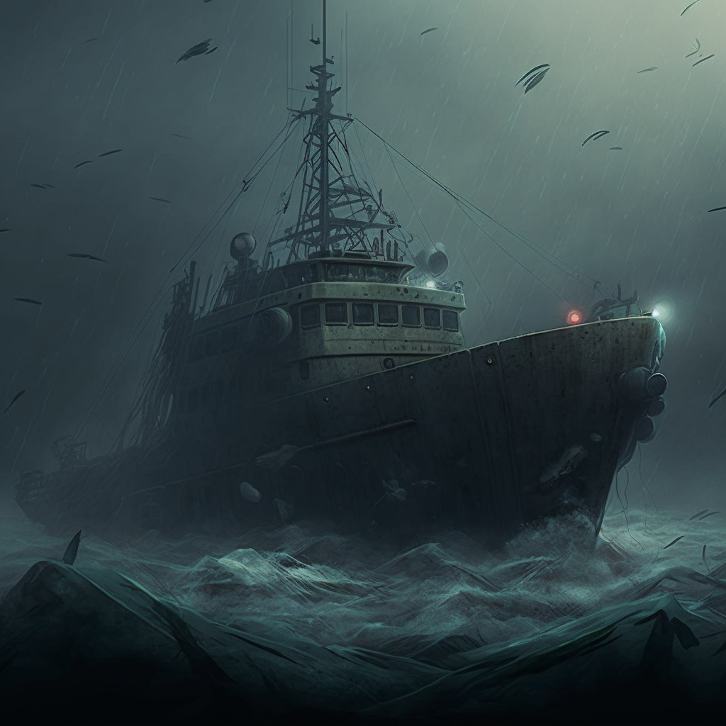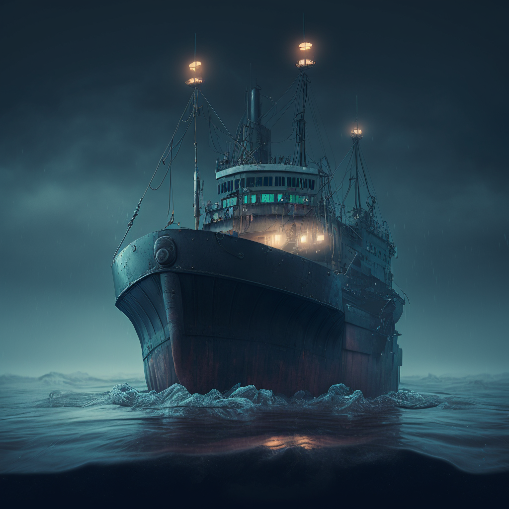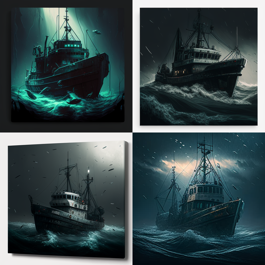 На днях запряг я ИИ (ИскИна, AI) - и буквально за десять минут нейросеть Midjourney наштамповала мне картинок, чтоб изобразить рыболовный траулер в постапокалиптическом море из новой книги Земля заката (Черный день-9).