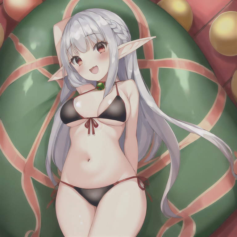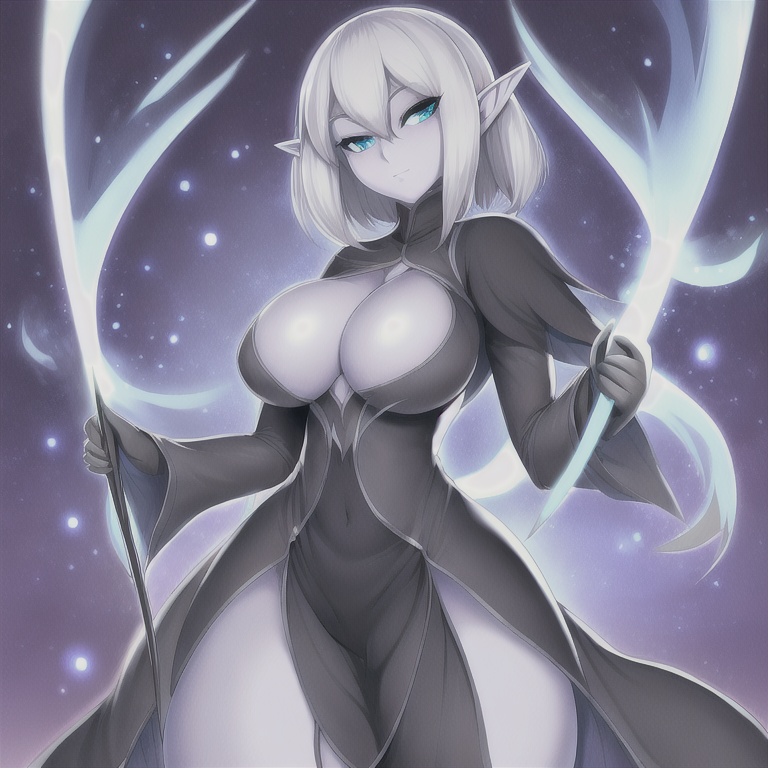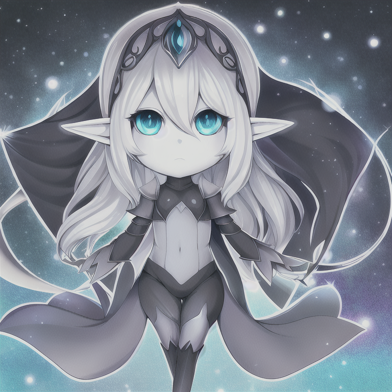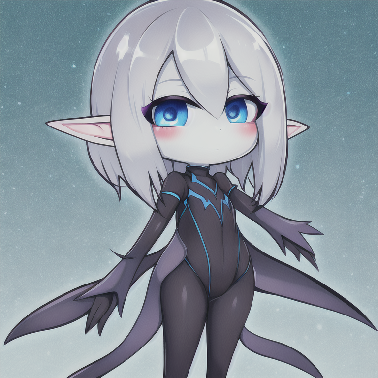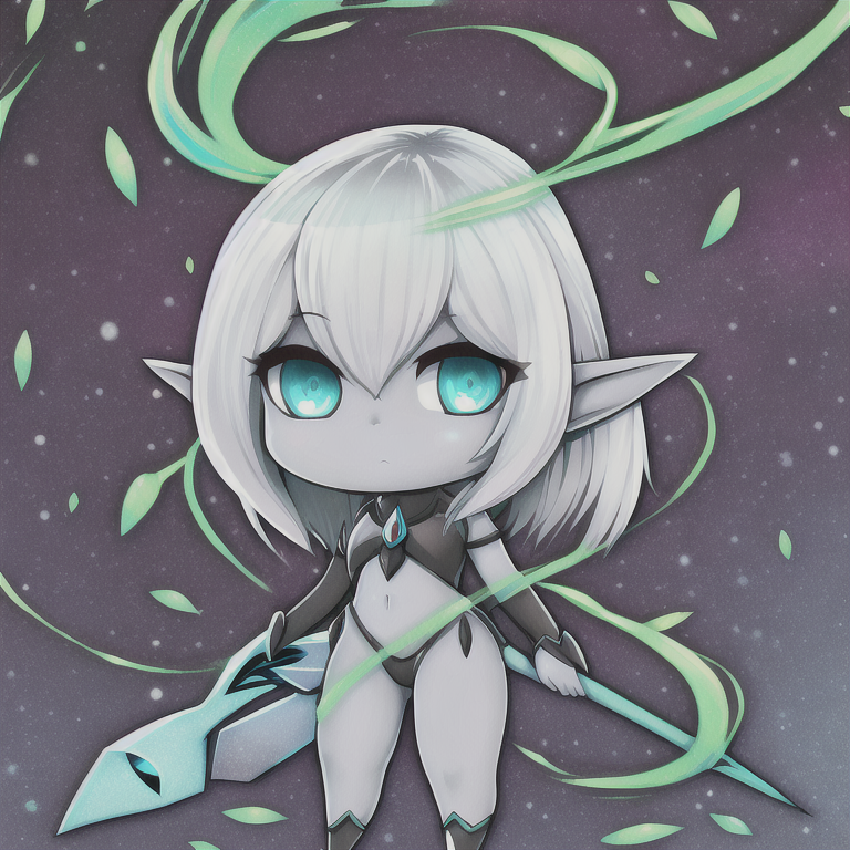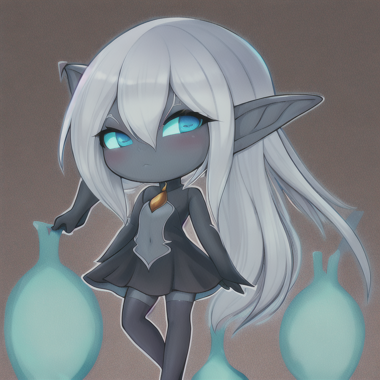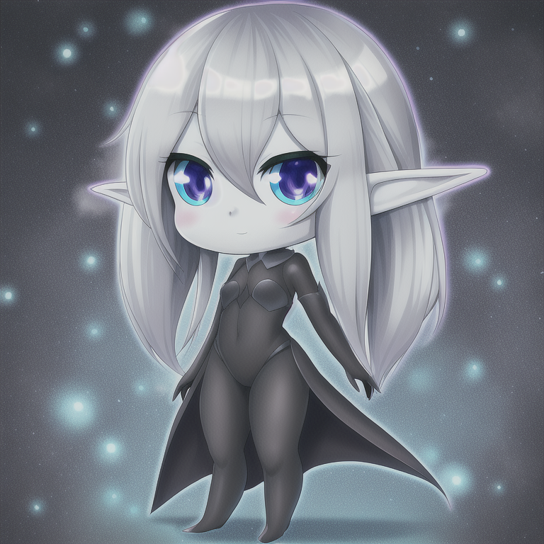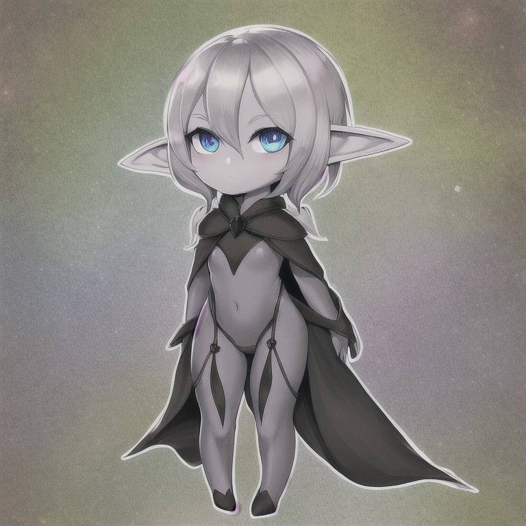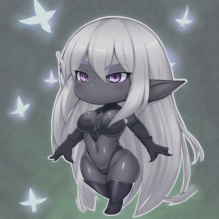 А потом убрал из промпта новогоднюю тему, и решил попробовать сделать чибика-дроу. Темнокожие ушастые красотки, ммм)