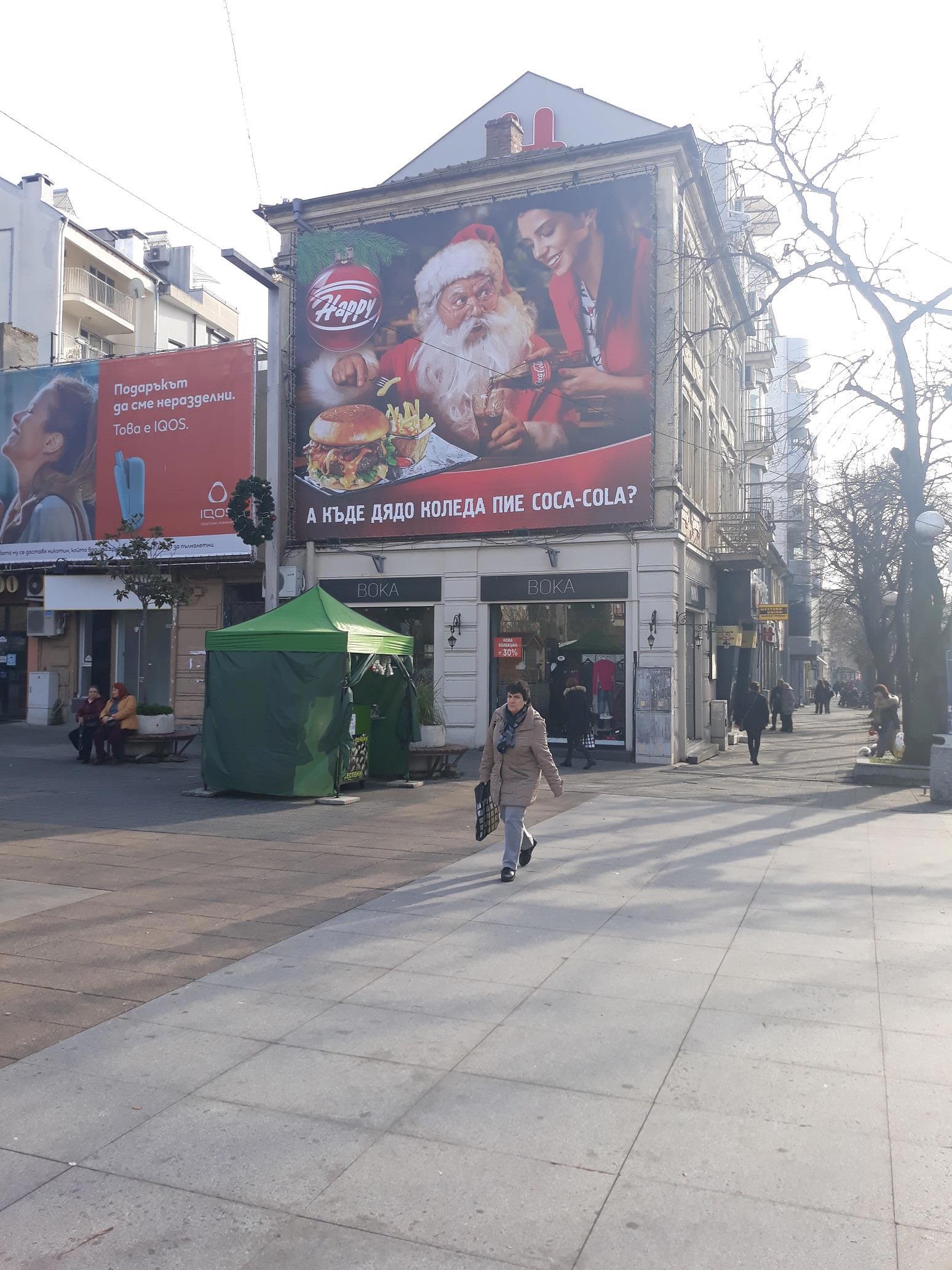 А вот он на рекламном плакате на главной пешеходной улице Бургаса: Александровской.