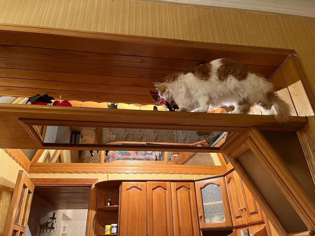 Автор: Анастасия ЖурбаКогда обнаружилось, что Кнопка запрыгивает на полку под потолком, я взяла стремянку и все предметы оттуда убрала.