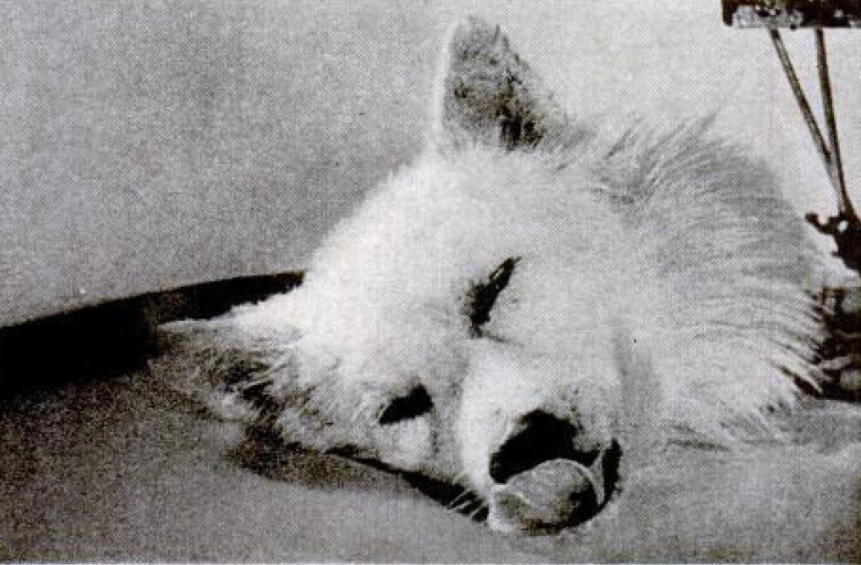 Поднявшись на ноги, собака демонстрирует выздоровление после экспериментальной смерти. Она бегает, лает, виляет хвостом и узнает своих друзей среди сотрудников лаборатории.