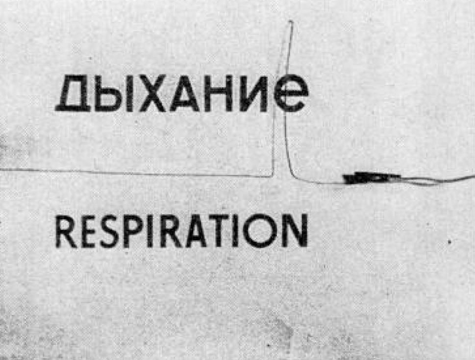 Последний вздох собаки регистрируется на кимографе как резкое покачивание. Нормальное дыхание отображается в виде регулярной циклической кривой.