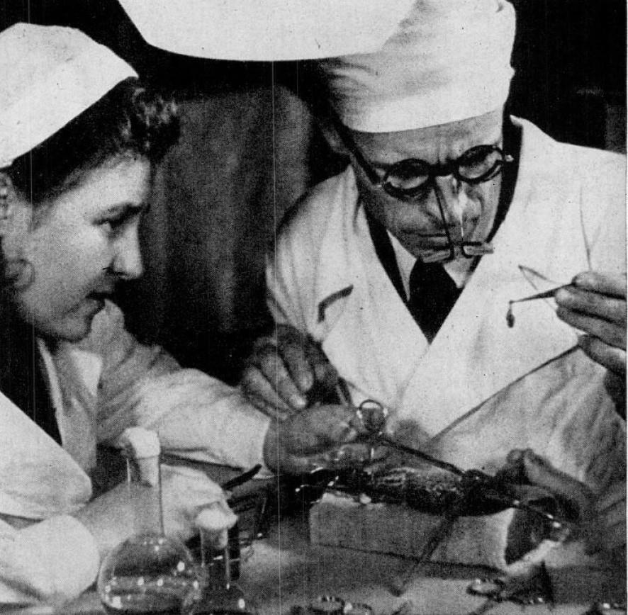 В течение многих лет физиологи проводили смелые эксперименты с самым жизненно важным органом тела. Сердца собак продолжали биться после смерти, а дополнительные сердца были подключены к кровотокам как теплокровных, так и холоднокровных животных. Теперь оба эксперимента были проведены за рамками более ранних исследований. Русские, по-видимому, жаждущие признания и менее робкие, чем американские ученые, объявляющие о впечатляющих и даже причудливых находках (LIFE, 25 октября 1943 г.), быстро опубликовали фотографии, показанные здесь.