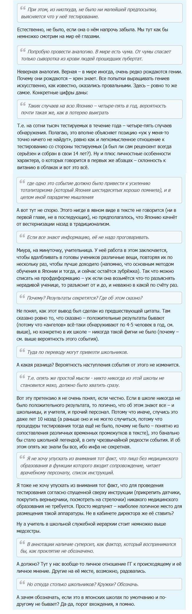 Дальнейший текст особого желания разбирать его на моменты не вызвал, там такой очень типовой школьно-повседневный бытовой описач, полный стереотипов.