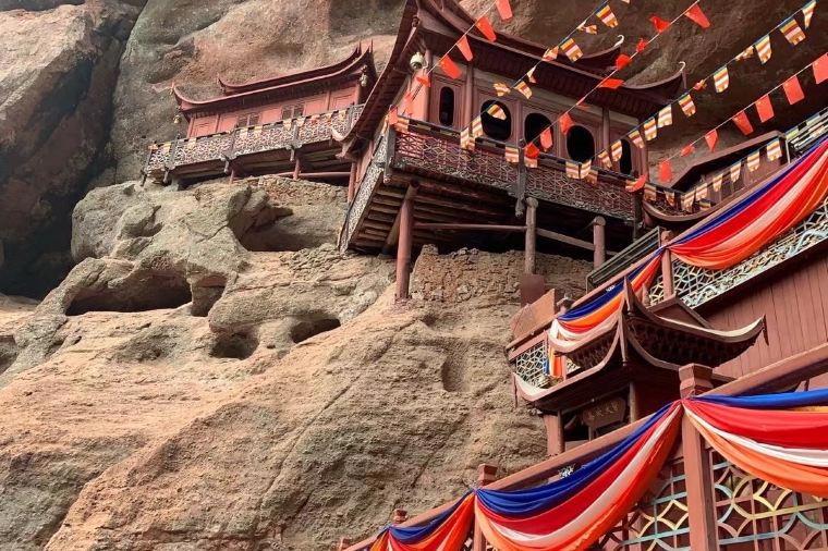 Храм Ганлуян, или «Храм Сладкой Росы», - это древний храм, построенный в 1146 году. Он окружен очень тихим парком и находится в огромной скале, поддерживаемой деревянной колонной внизу.