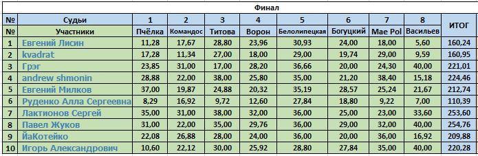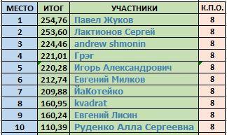 По традиции немного цифр А так выглядит итоговое распределение мест: | |