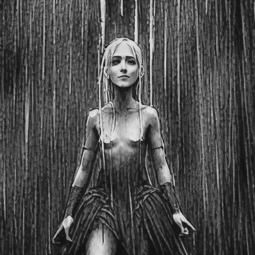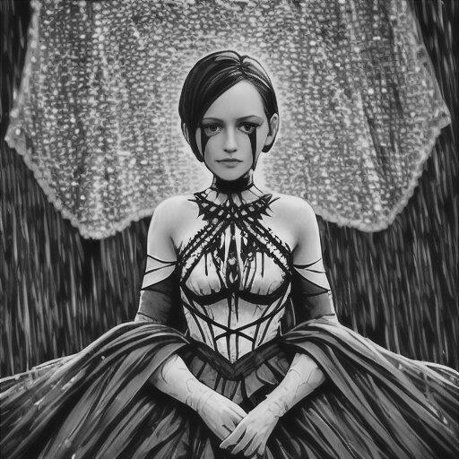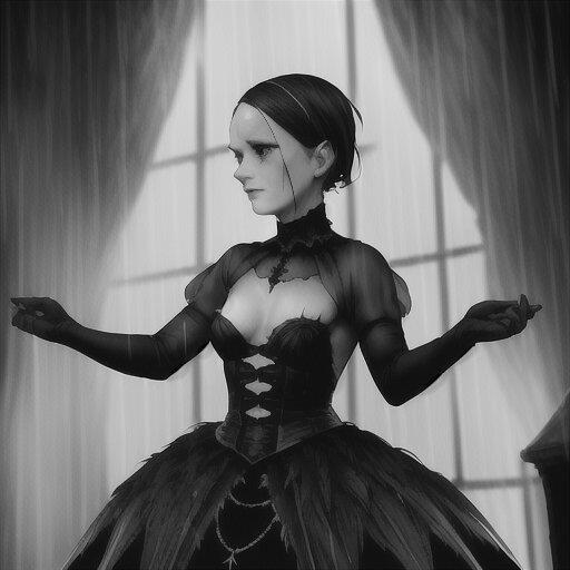 Я прогнал на стандартной модели пару сотен попыток указанной сцены. В основном это мусор - жутковатый, но мусор. И вот решил проверить на одной из гибридных моделей (Anything v3.0, 0.3 + HassanBlend v1.4, 0.7). Первая модель, Anything, тренирована для аниме; вторая - для 18+ (преимущественно женские изображения). После одной из попыток внезапно получилась вот эта "тёмная балерина":