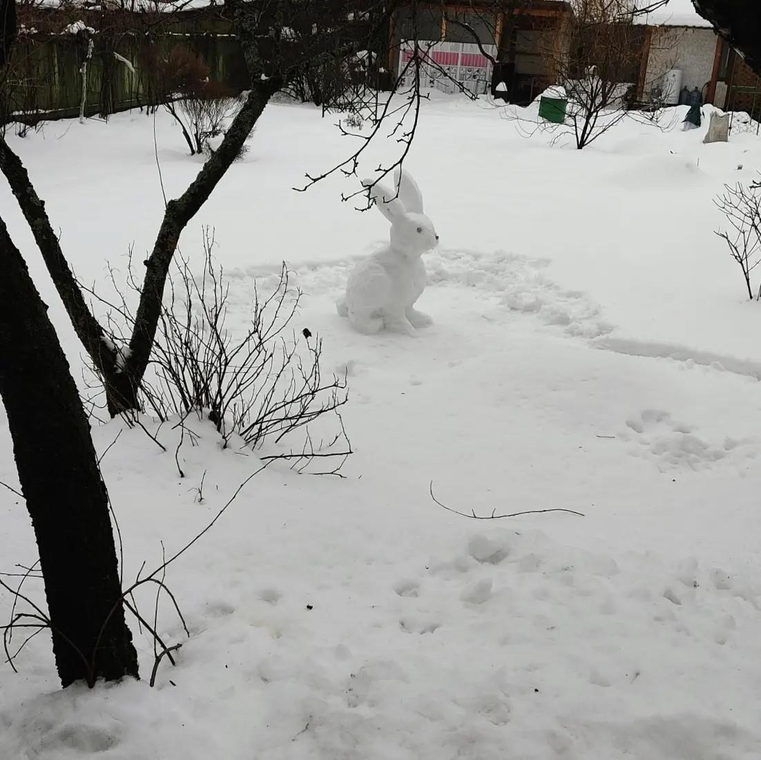 Вот такой вот кролик слепился во дворе дома, где наша компания встречала Новый год.