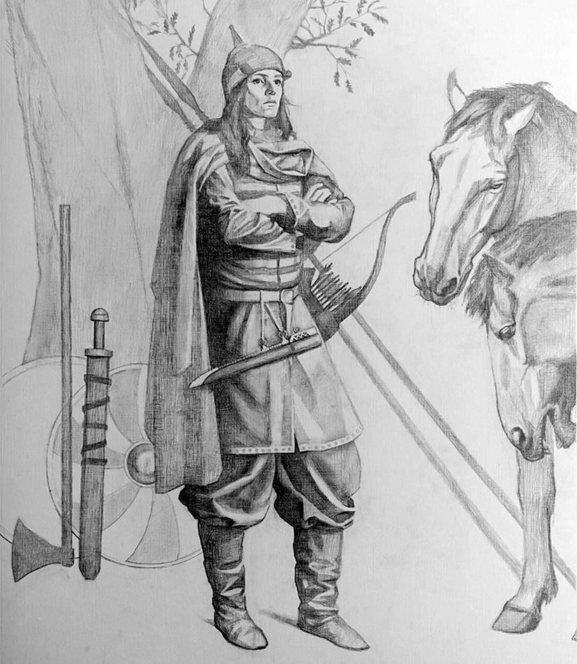 Умерла она относительно молодой. Ей было от 30 до 40 лет. А вот и реконструкция знатной воительницы во всей красе: