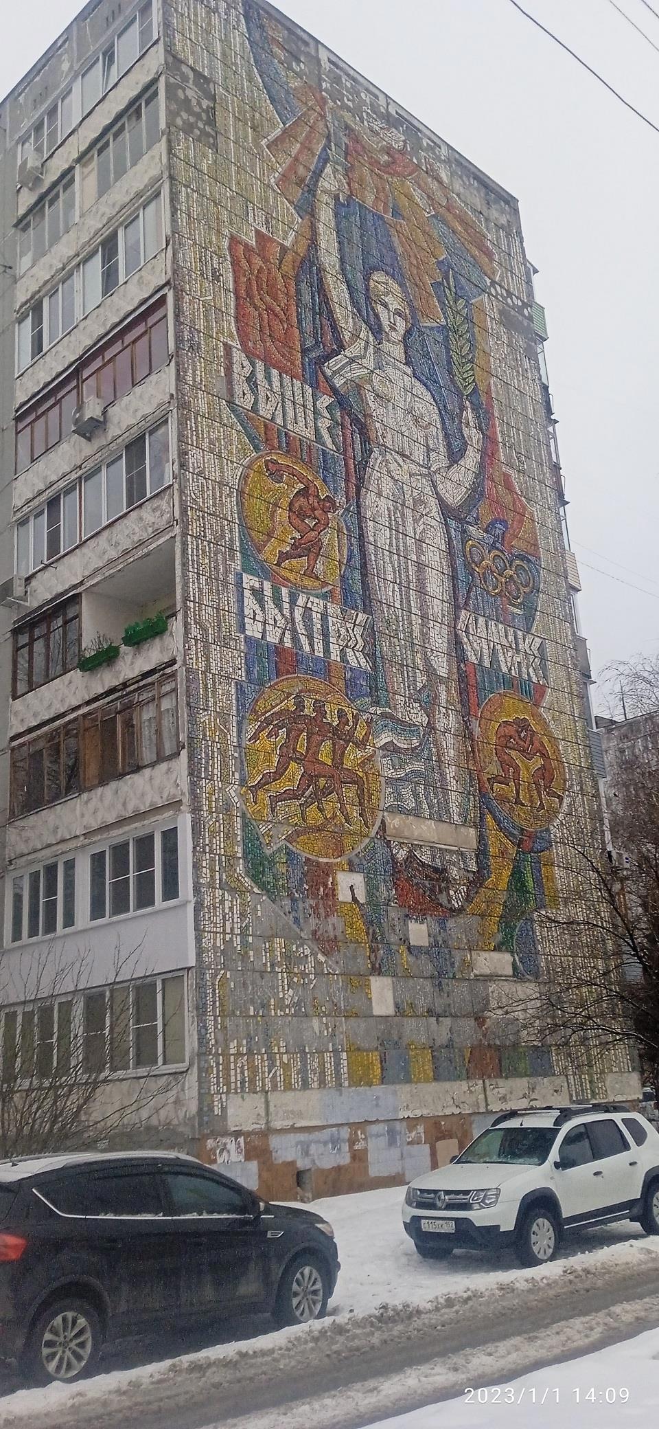 Панно на бывшем доме пионеров в Сормове... по-моему юбка у юной пионерки слегка коротковата.