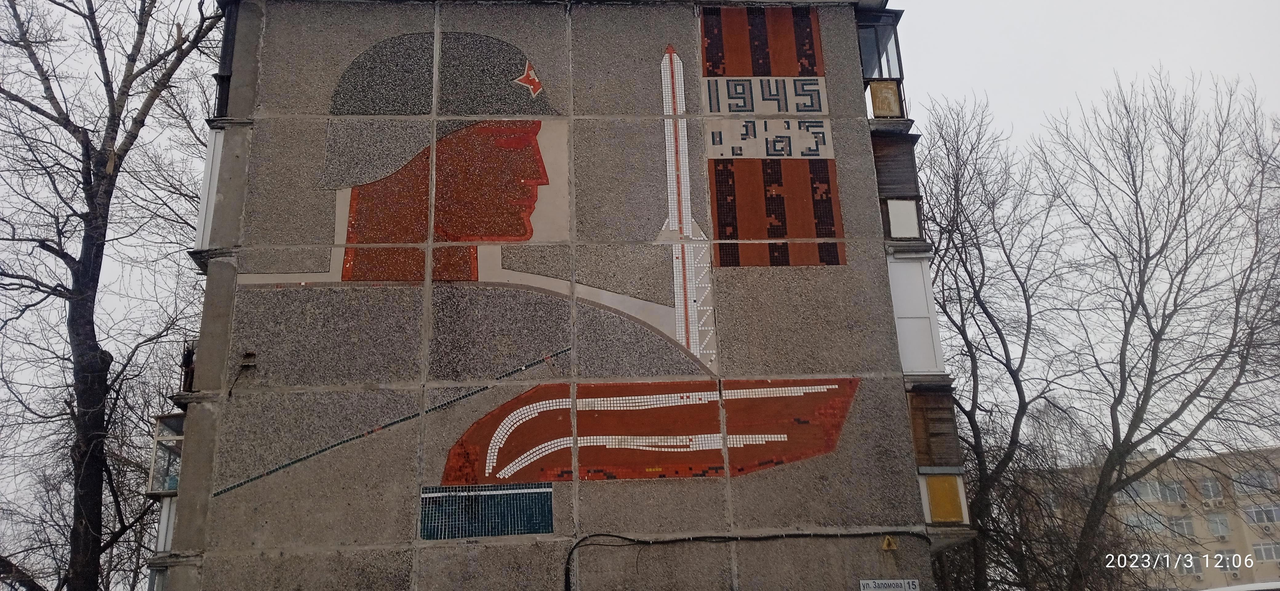 Обычная хрущевка рядом с метро Заречная, а как пробирает... до костей - тут и парад победы, тут и молодые спортсмены и все такое. Шедевр на мой скромный взгляд.