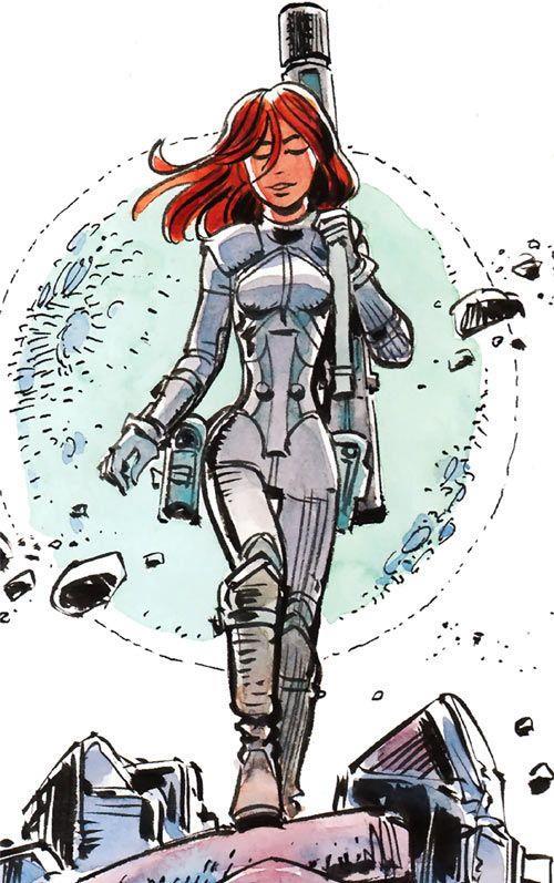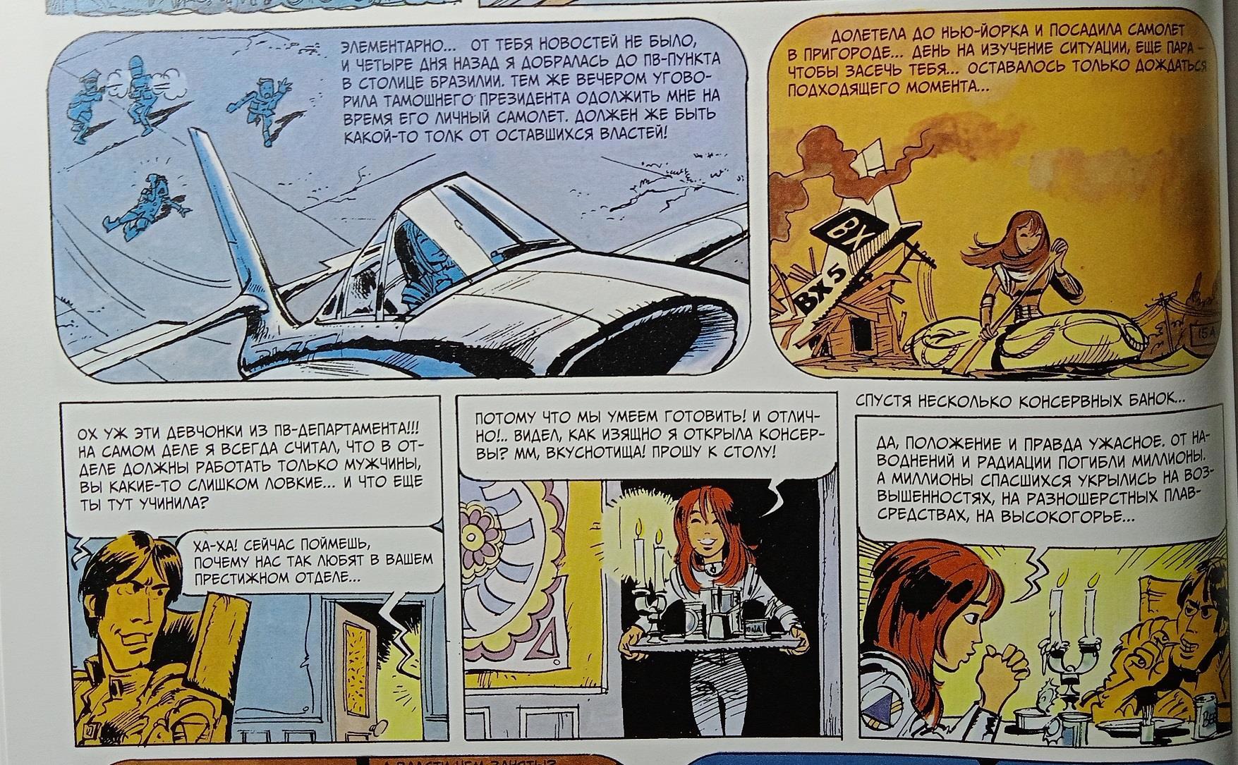 Что отдельно интересного для себя я нашёл в этих историях? Ну... Европейская фантастика конца 60-х. Два персонажа. И женский персонаж - полноправная героиня, не уступающая герою. Лорелин - не фансервисный довесок к Валериану, а действительно второй основной персонаж. Конечно, и с фансервисом всё в порядке - рыжеволосая красотка, обычно облачённая в белоснежный форменный комбинезон патрульного, иногда ещё и с ботфортами (хотя и без шпилек, вполне практичными) ^_^ Кстати, отдельный респект - костюмы героини всегда сочетают привлекательность с удобством, и высоких каблуков Лорелин вообще не носит.