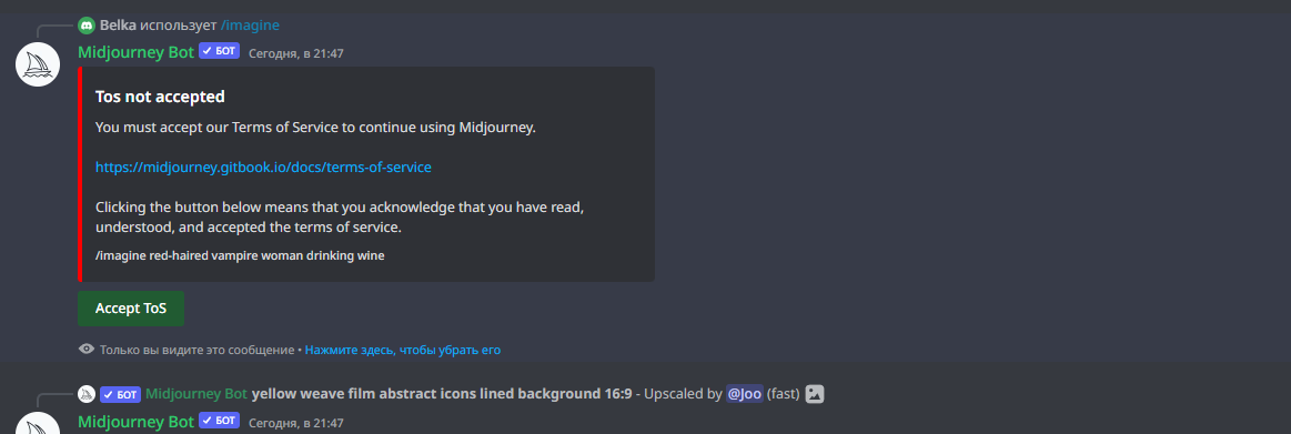 6. Вводим команду: /imagine