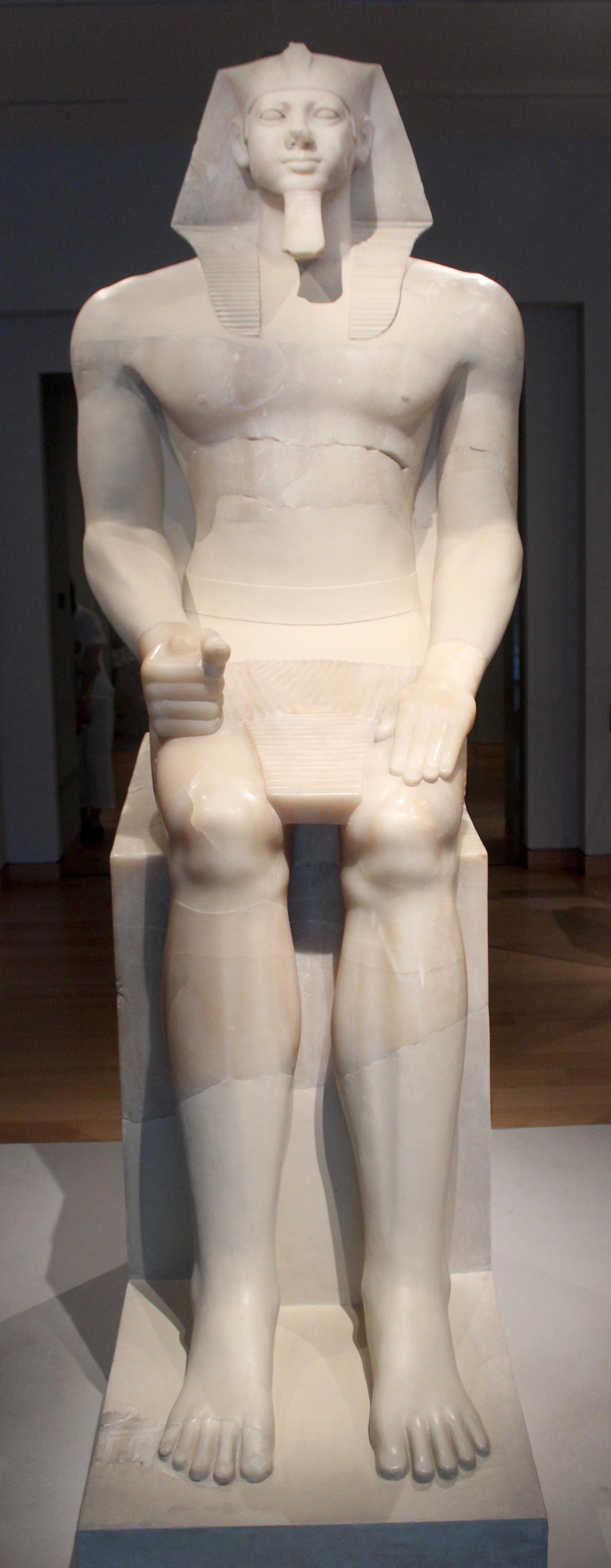 Эта статуя Менкауры давно привлекла мое внимание очень странными пропорциями: голова несоразмерна плечам и телу вообще. Была версия, что голова была переделана. Но тут попалась фотография в хорошем качестве и большого размера.