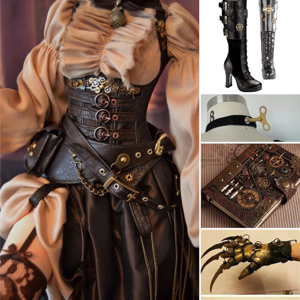У мужчины на фото выше отличный кожаный тренч и гловелетты, трость опять же. А на корсете ниже, прекрасный пояс для шатлена, в данном случае с окончанием -ов. Всё можно на себя навешать)) от зеркальца до сковородки)) Кстати, это комплект одежды для куклы)