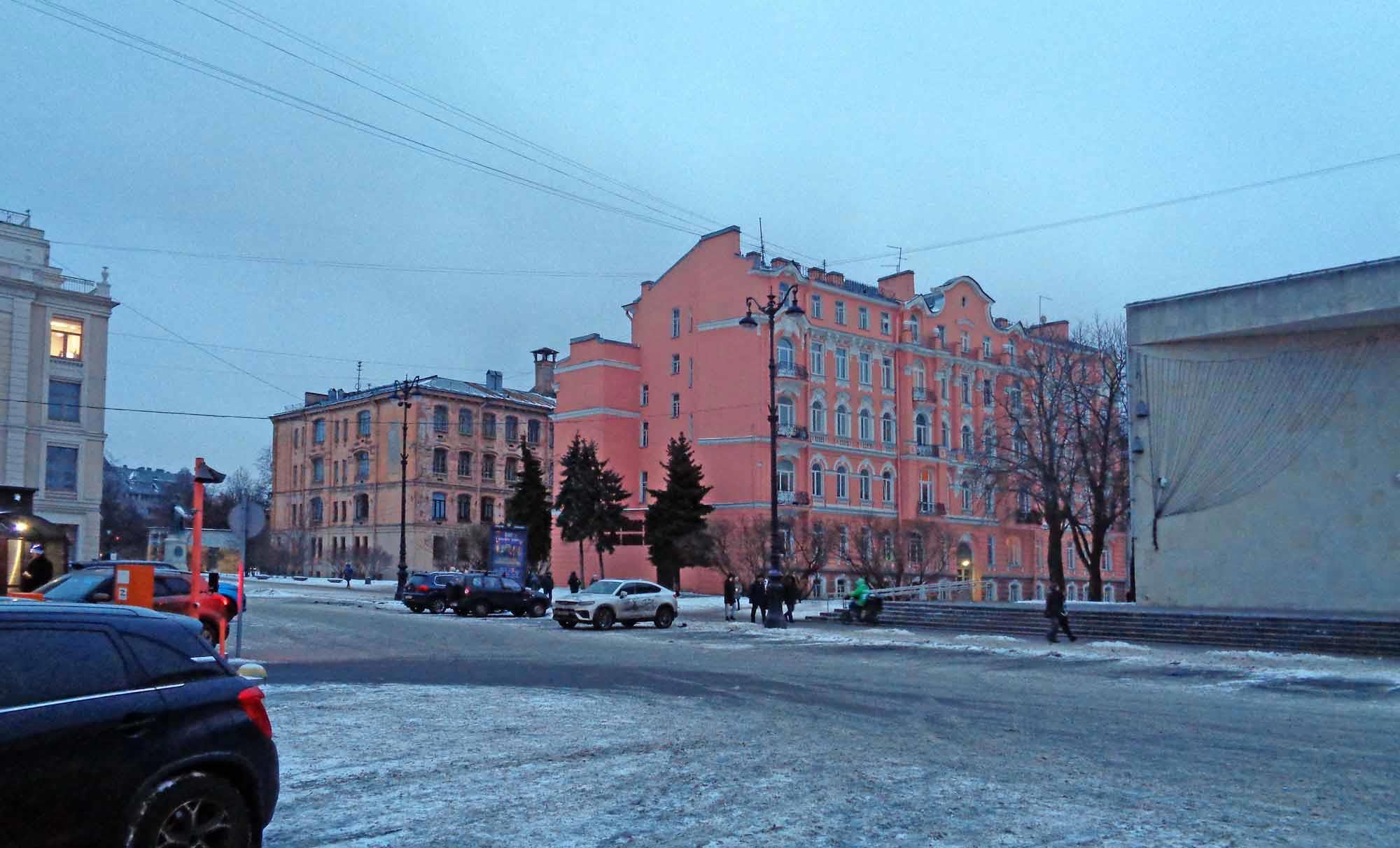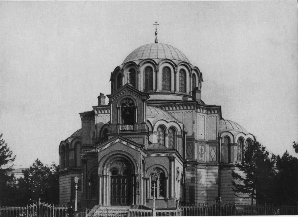 Знаете, что за уродская коробка торчит справа из-за кадра на следующем фото? Это не трансформаторная будка, это БКЗ "Октябрьский", который построили на месте разрушенной в 1961 году греческой православной церкви. Простояла она всю войну, но коммунисты решили, что коробкоподобная фигня будет смотреться лучше.