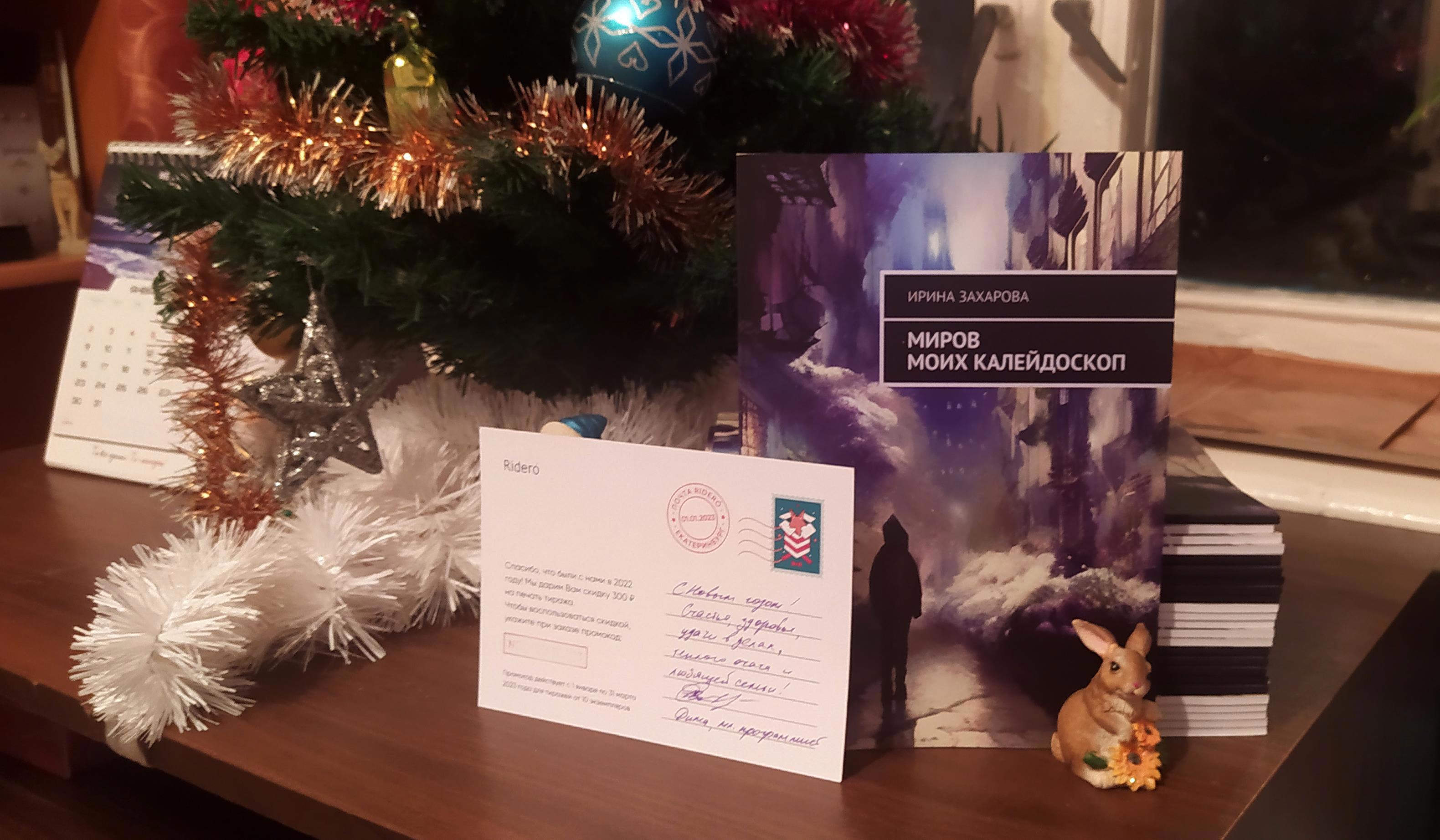 PS: Было приятно получить в посылке новогоднюю открыточку от Ридеро. Где оказались не только стандартные обезличенные фразы, но и живые пожелания. От младшего программиста, вот. Вышло чертовски мило ))