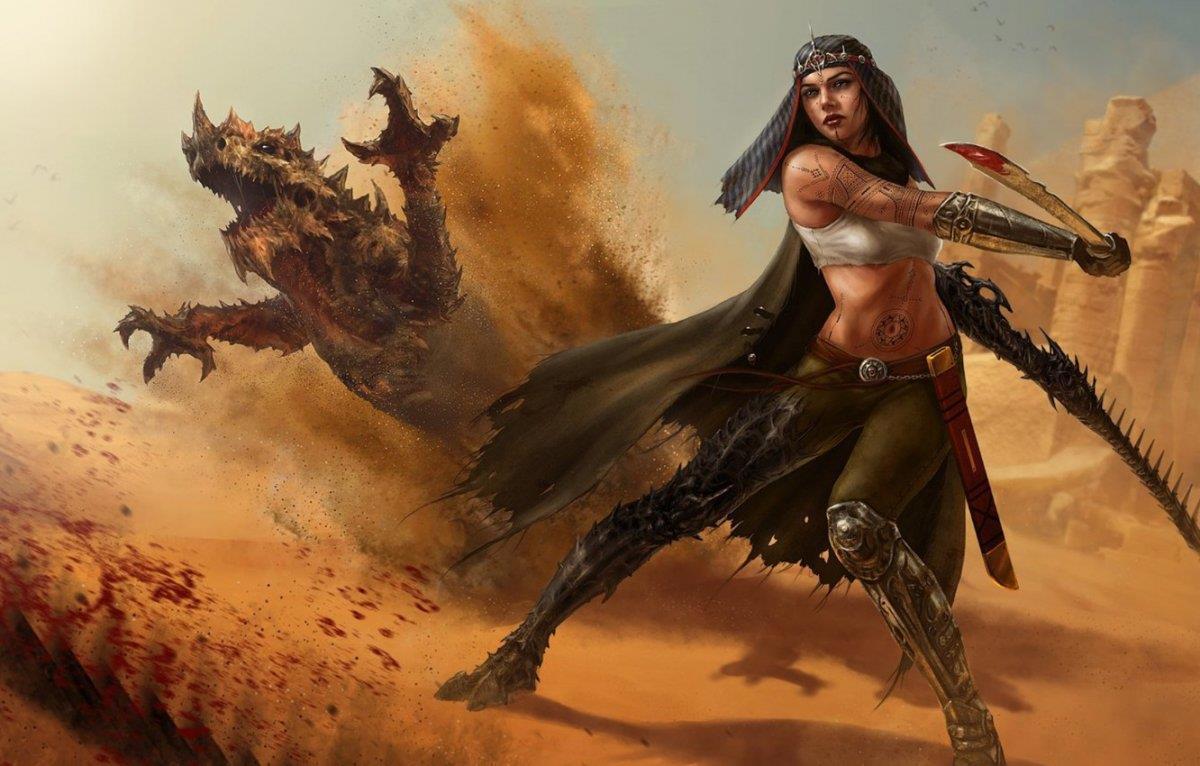 Задача/видение/ориентир: миловидная девушка, лет 20-25, стройная, смуглая, владеет любым оружием идеально, в частности парными кинжалами. Родилась и выросла в жарком климате (пустыня), в трущобах местного города. С детства приучена к жестокости, воровству и прочим прелестям жизни. Любит удобную, комфортную для боя одежду, при этом не забывая подчеркнуть свою женственность и красоту) Волосы обязательно длинные, черты лица точеные, местами с ярко-выраженными острыми линиями. Наличие татуировок/иной атрибутики вполне допустимо.