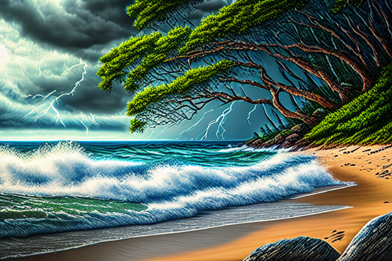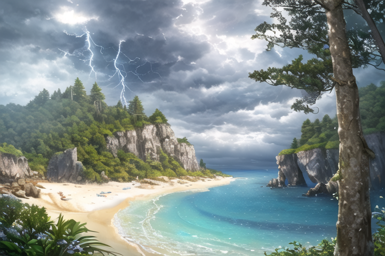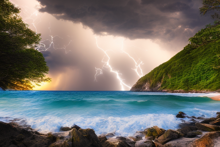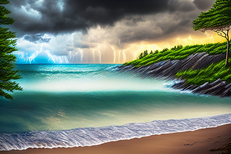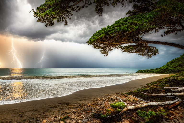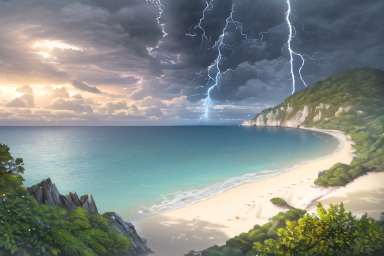 Пляж + шторм с молнией
