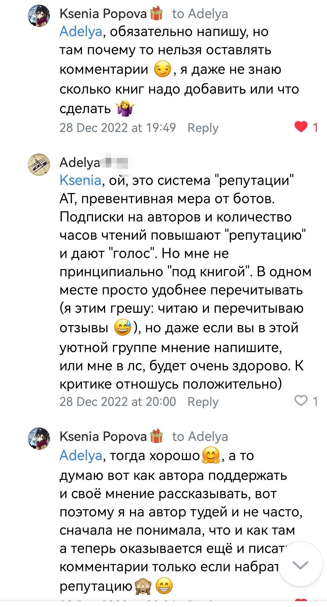 Так вот о «низкой репутации» — даже после объяснений, мол это АТ так с ботами борется, никому не хочется возвращаться и читать книги на АТ вот так, без права что-то писать. А авторы теряют и читателей, и драгоценные читательские впечатления, ведь далеко не все придут писать на лн или в вк.