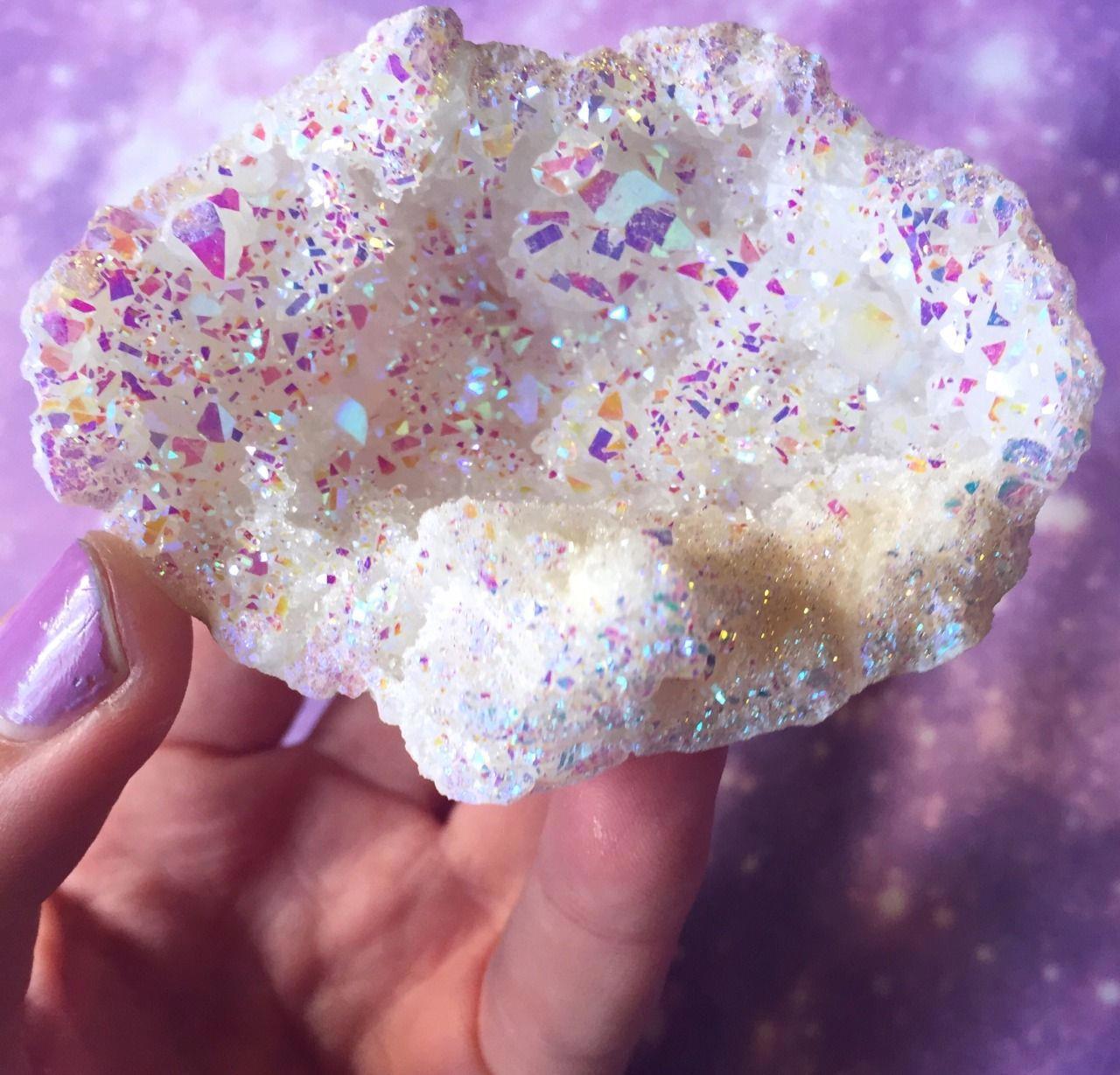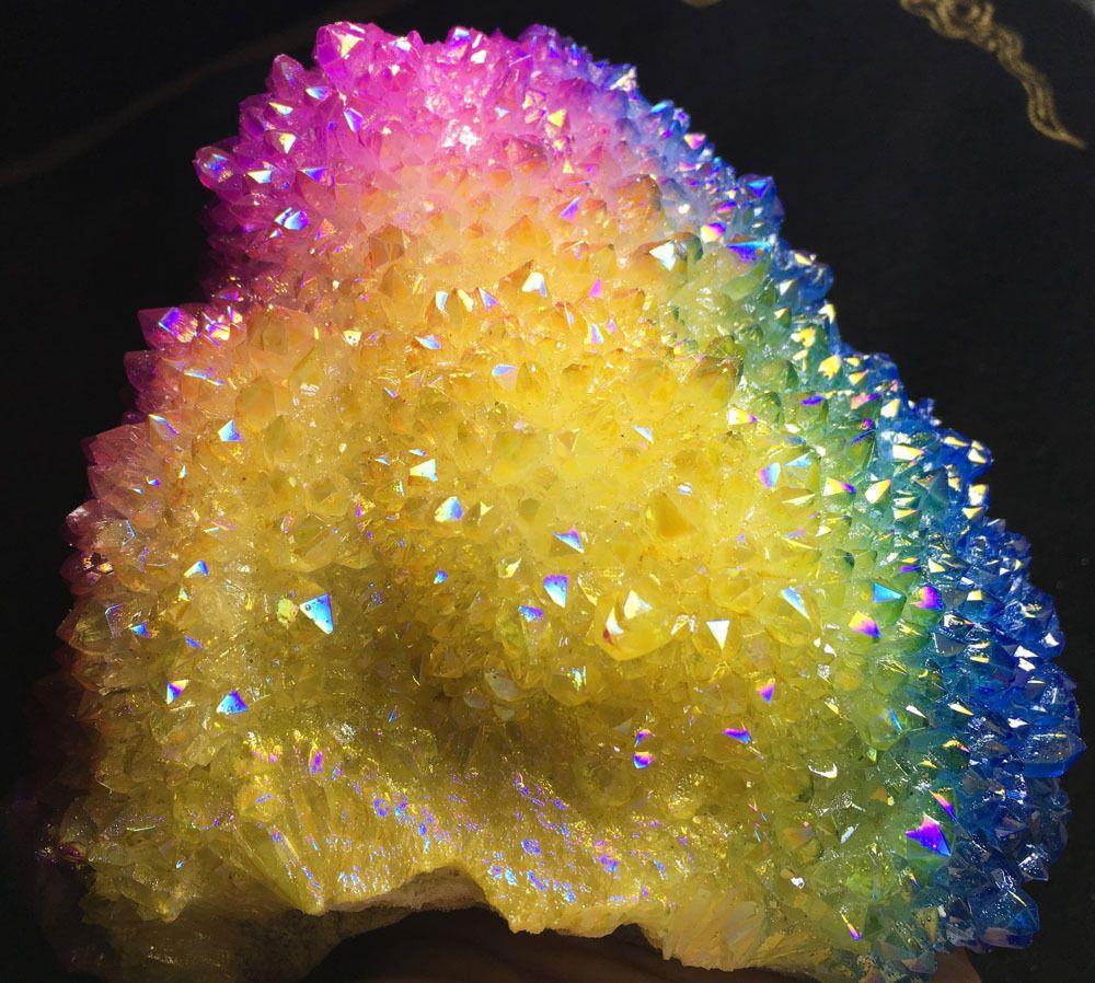 "Радужный кварц или Аура - это обработанный натуральный кварц. Кристаллы кварца, которые становятся этими яркими образцами, являются просто обычными точками под поверхностью. Изменение не является незначительным, оно требует большого количества технологий и некоторых экзотических материалов."