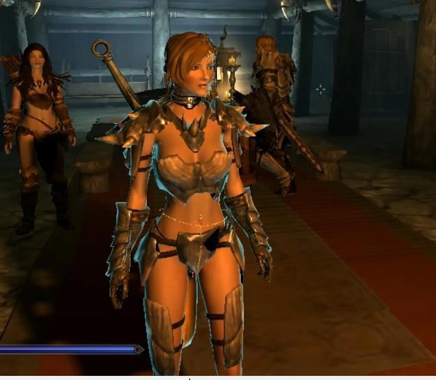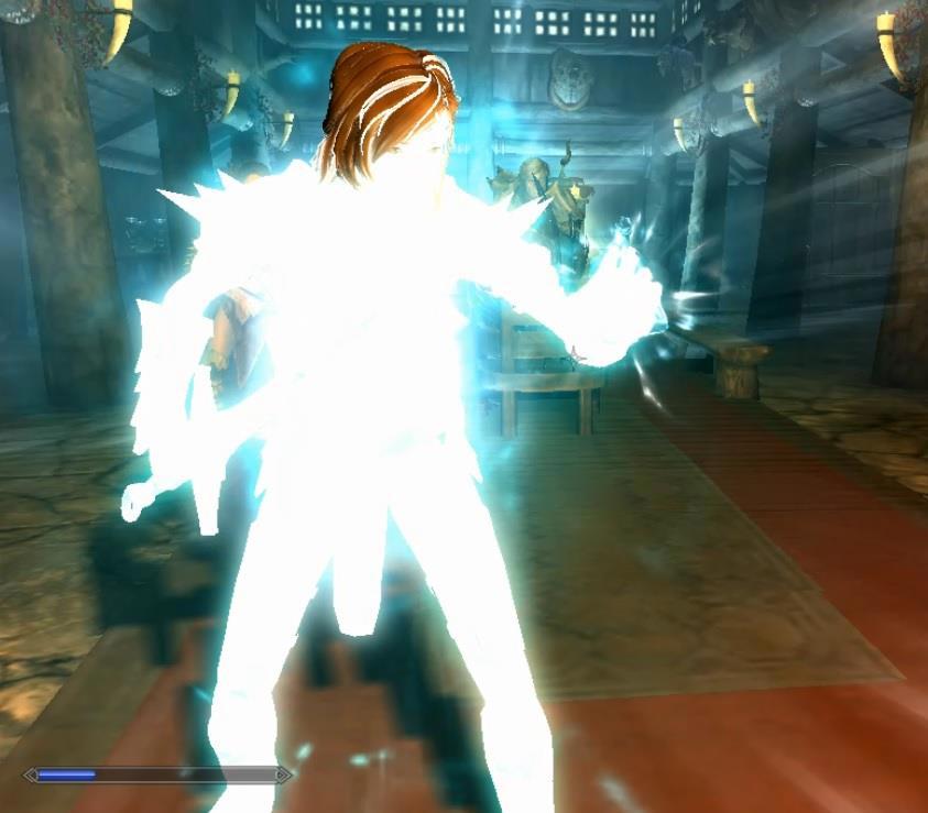 Но поскольку броня, которая на ней имеется... Мда. Тут больше подходит слово "отсутствует." Хорошо, что это игра, и защита зависит от циферок в характеристиках брони (а это лёгкая драконья броня) а не от реального "покрытия тела." Но усилить защиту можно ещё и магическим способом, сперва зарядив...