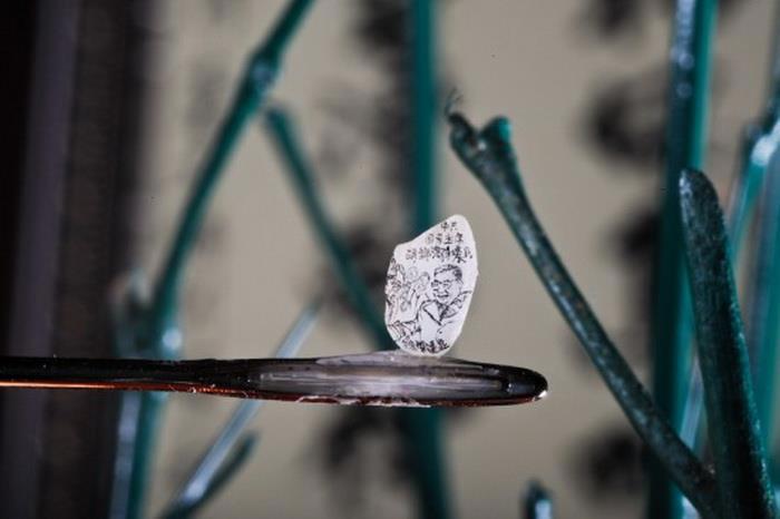 Это где каллиграфия встречается с микроживописью. Иероглифы на крыльях стрекозы.