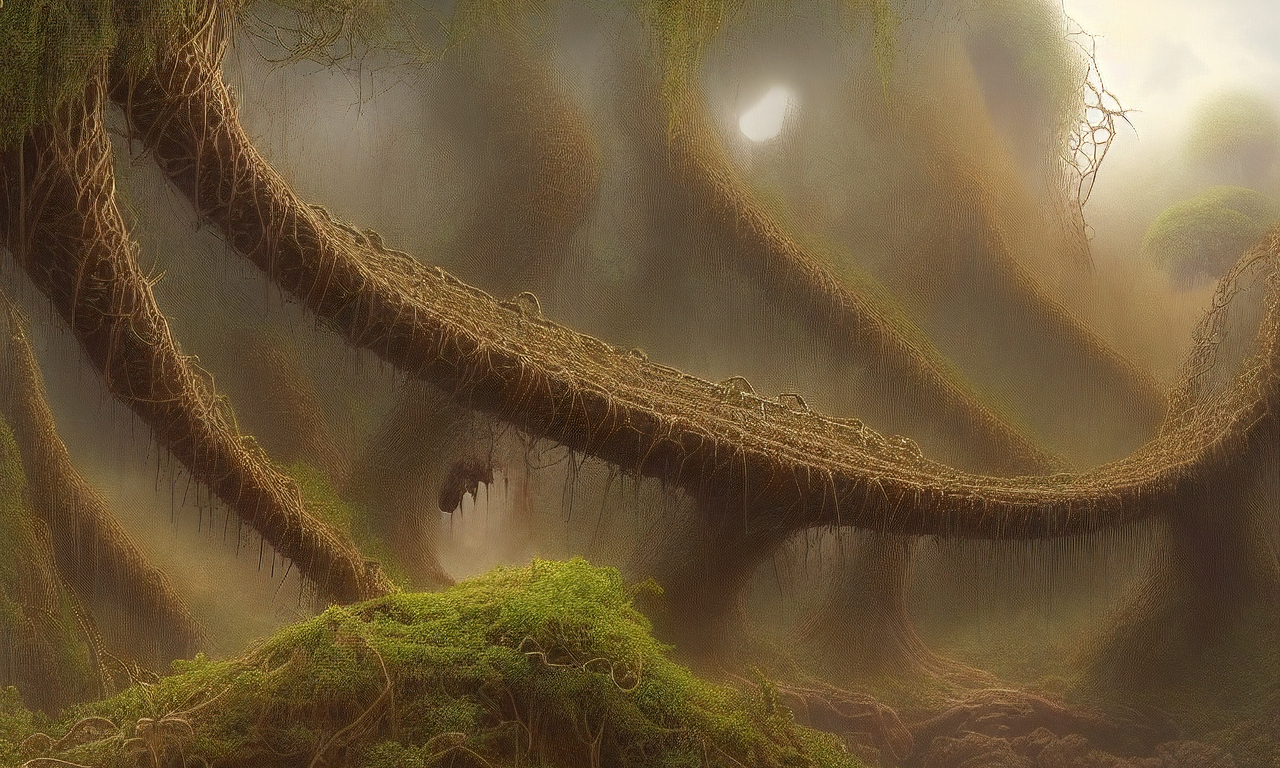 А вообще, я так понимаю, если грамотно эксперементировать с "весами" и матрицами, то в потенциале можно воспроизвести любую сцену из сюжетов наших книг. Вот только проблема в том, нужно много чего учитывать в уме, а лучше вообще записывать каждый свой шаг, потому как любое твоё мельчайшее изменение в промпте, может кардинально похерить всю картинку. Вот я почти идеально сгенерировал пейзаж Криволесья. Не хватает только живности, которым лес изобилует.