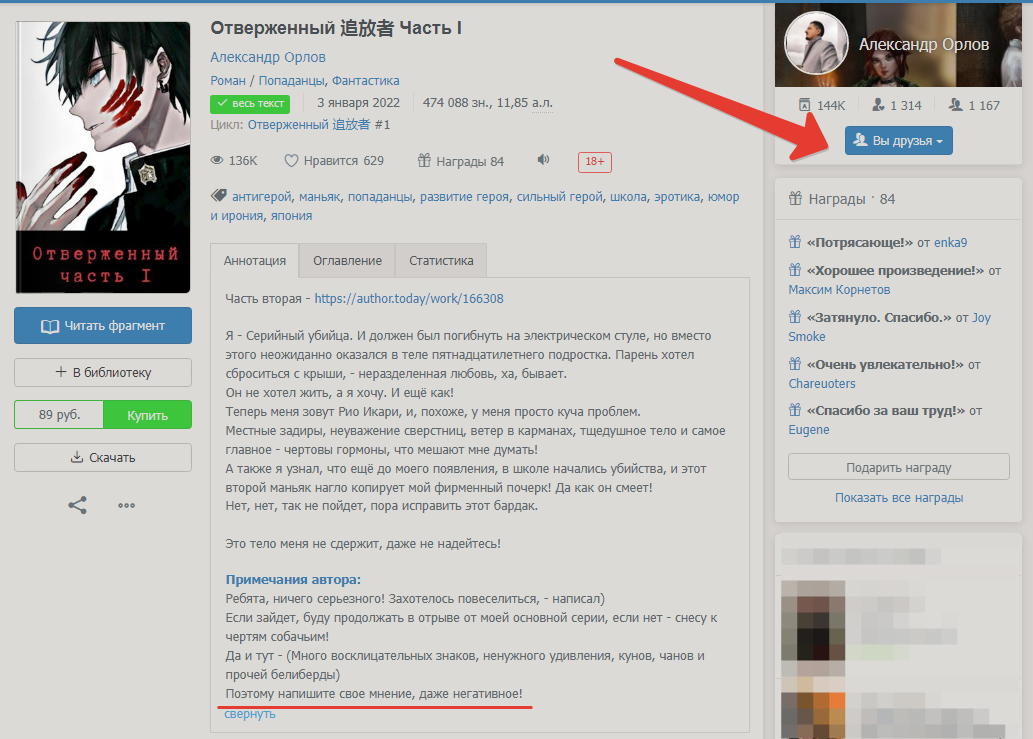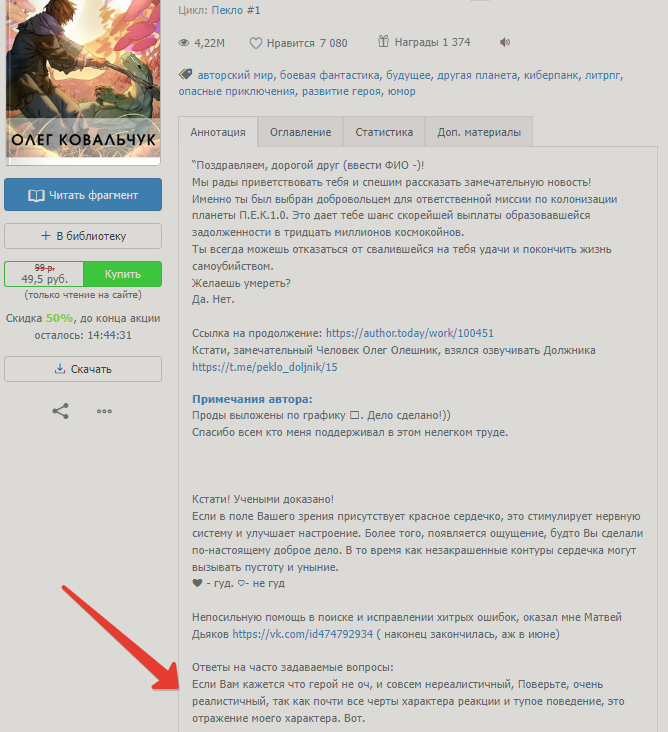 Я тоже напишу похожее примечание: «Мой герой не тупой, он списан с меня. А же я не тупой, я просто долбоёб».
