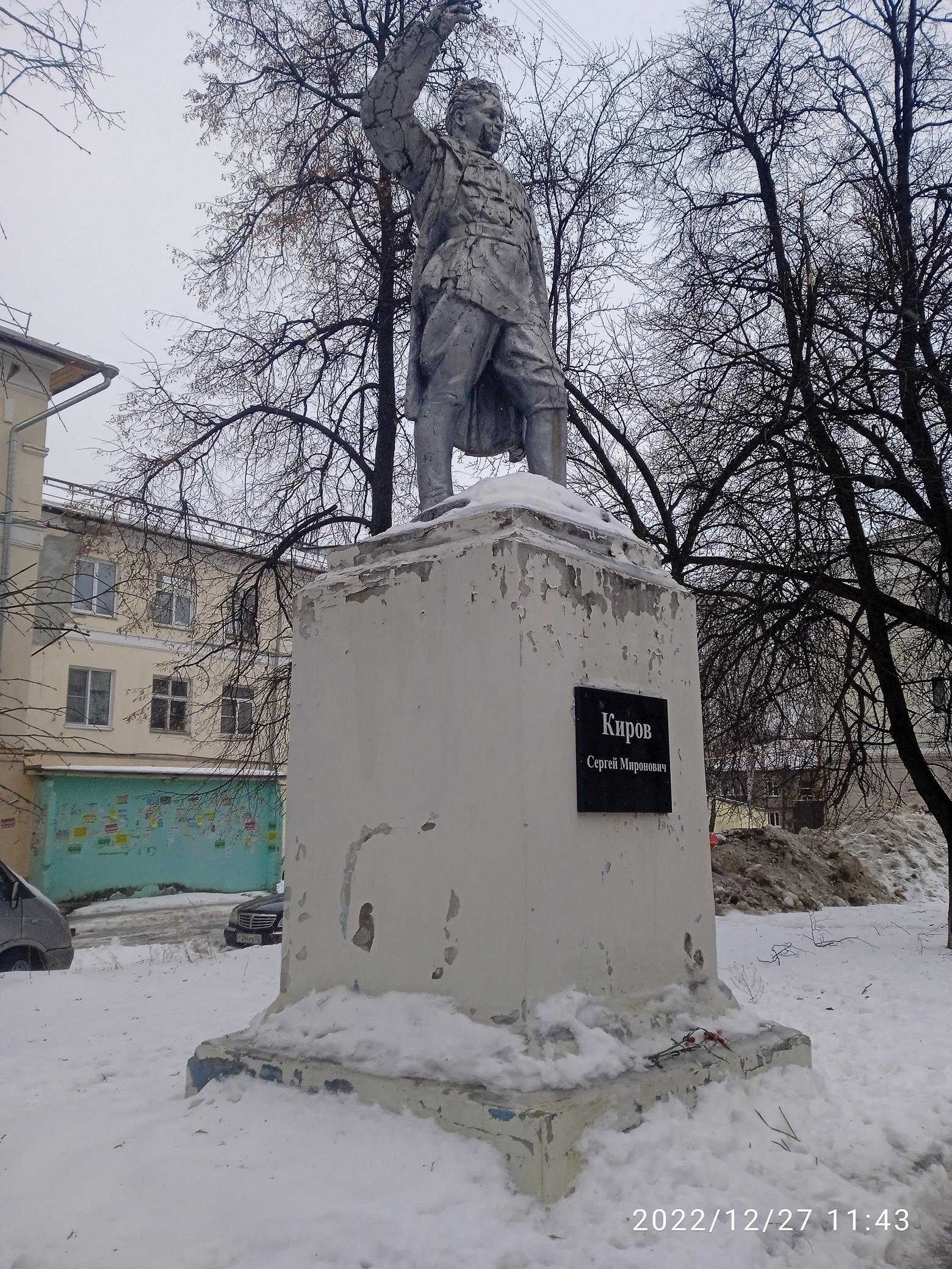 И товарищ Киров, жутко облупленный, в дебрях Ленинского района, с фуражкой в левой руке
