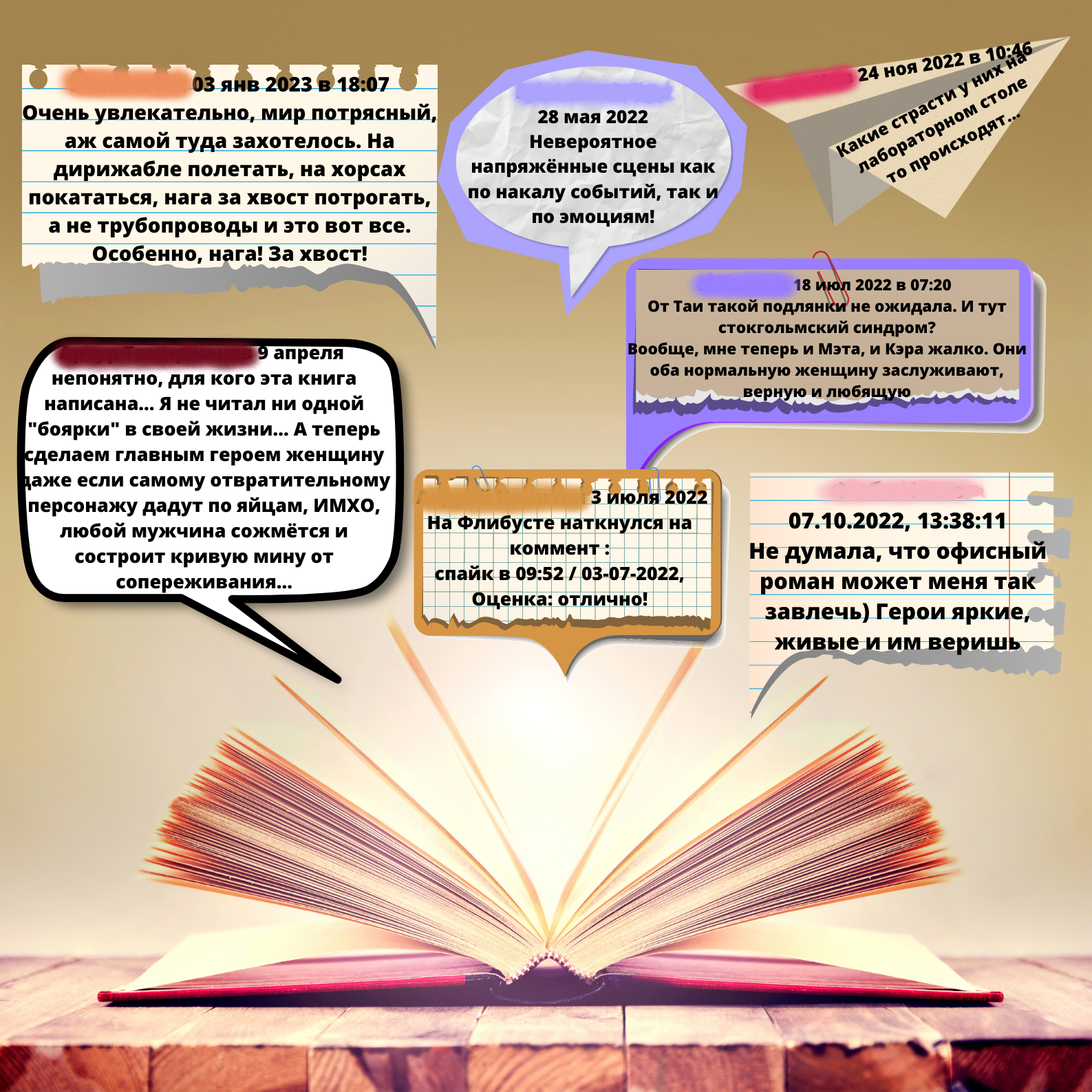 Хочу показать несколько комментариев, которые заставили меня писать дальше, несмотря ни на что. Даже если меня ругали, а не хвалили, я прислушивалась к критике, исправлялась и творила дальше. Эти комментарии в разное время мне оставляли под разными книгами, такими как: