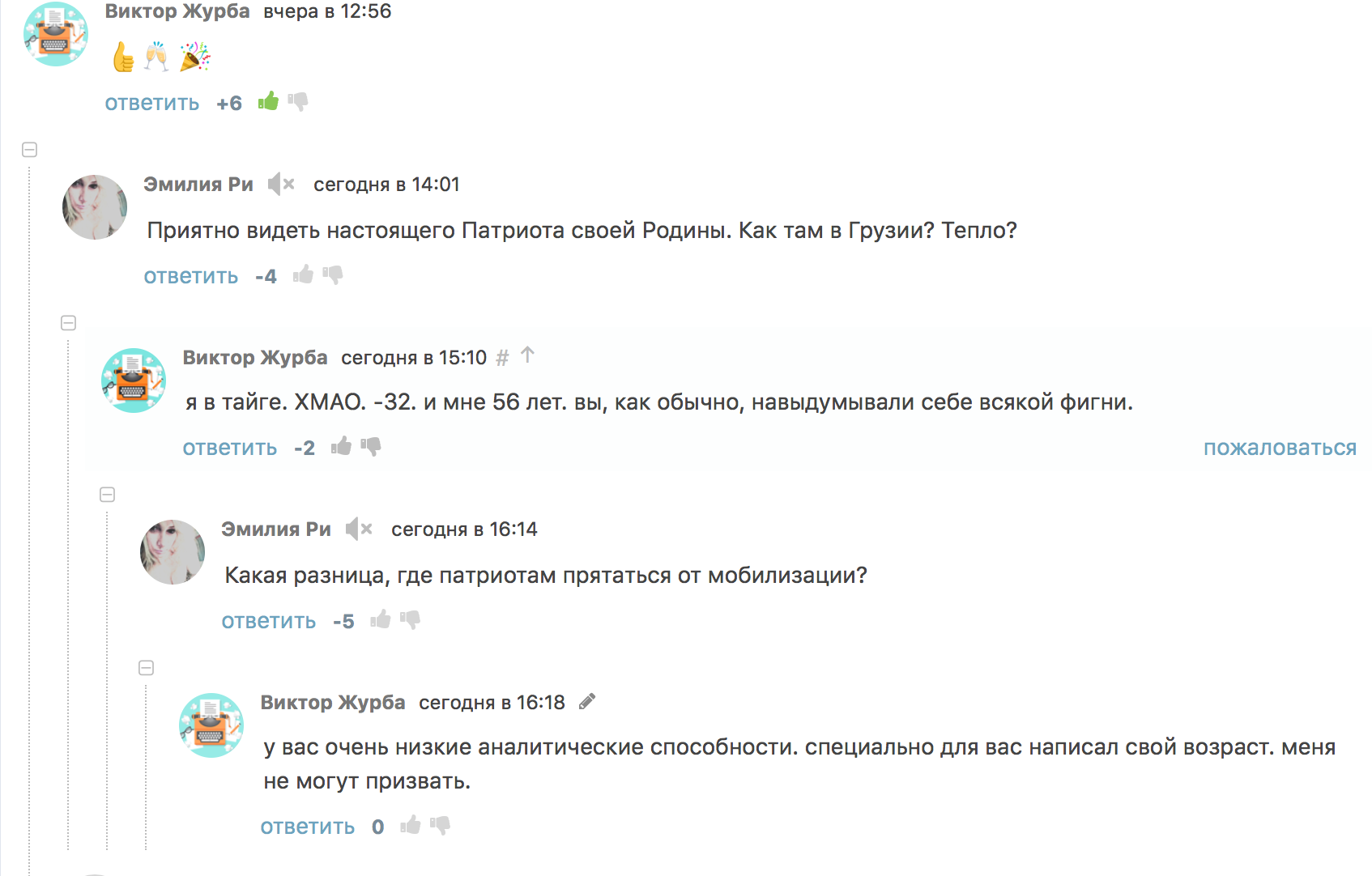 В Грузии я живу со своим молодым человеком и кошкой. Переехали мы в АПРЕЛЕ 2022 года (у меня весной и летом вышло много блогов и сборников про Батуми и переезд). Насколько мне известно, в апреле не было мобилизации (если дама, конечно, не имеет ввиду какую-то воображаемую мобилизацию).
