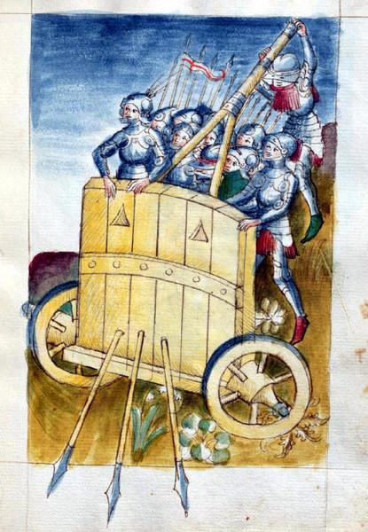 Идея серпоносных колесниц не давала покоя военным теоретикам в средние века.