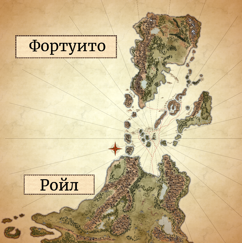 «Странно было бы начать историю Фортуитского государства сразу же с раздробленности между орденами, расколовшими государство в Эре V "Господства Людей", как и странно было бы начать с человека, первым ступившим на "спокойную землю". Поэтому, историю я начну с Ройла — с государства расположенного на обширным острове, который так же, как и Фортуито в будущем, раздроблен на две противоборствующие "силы".»