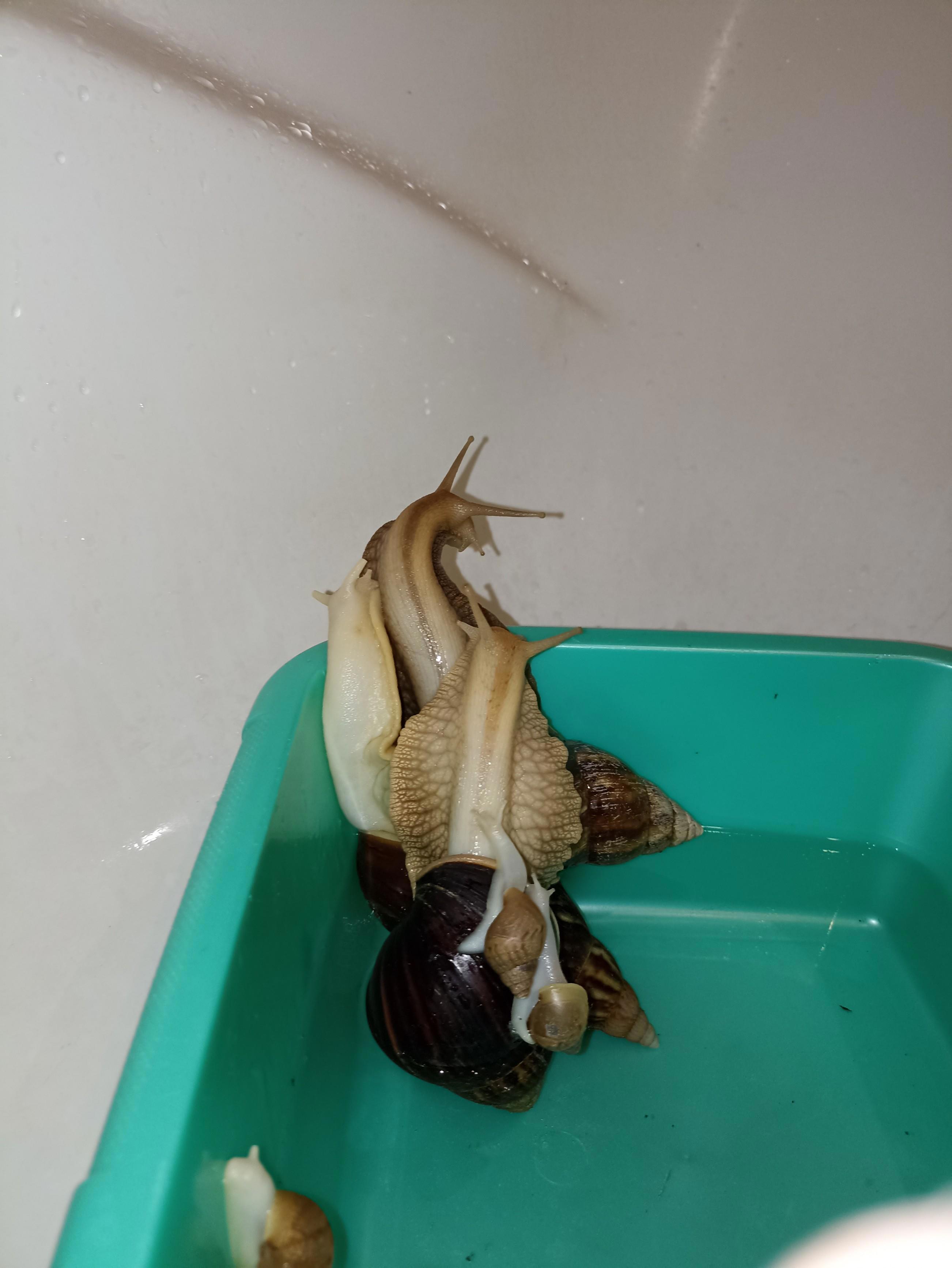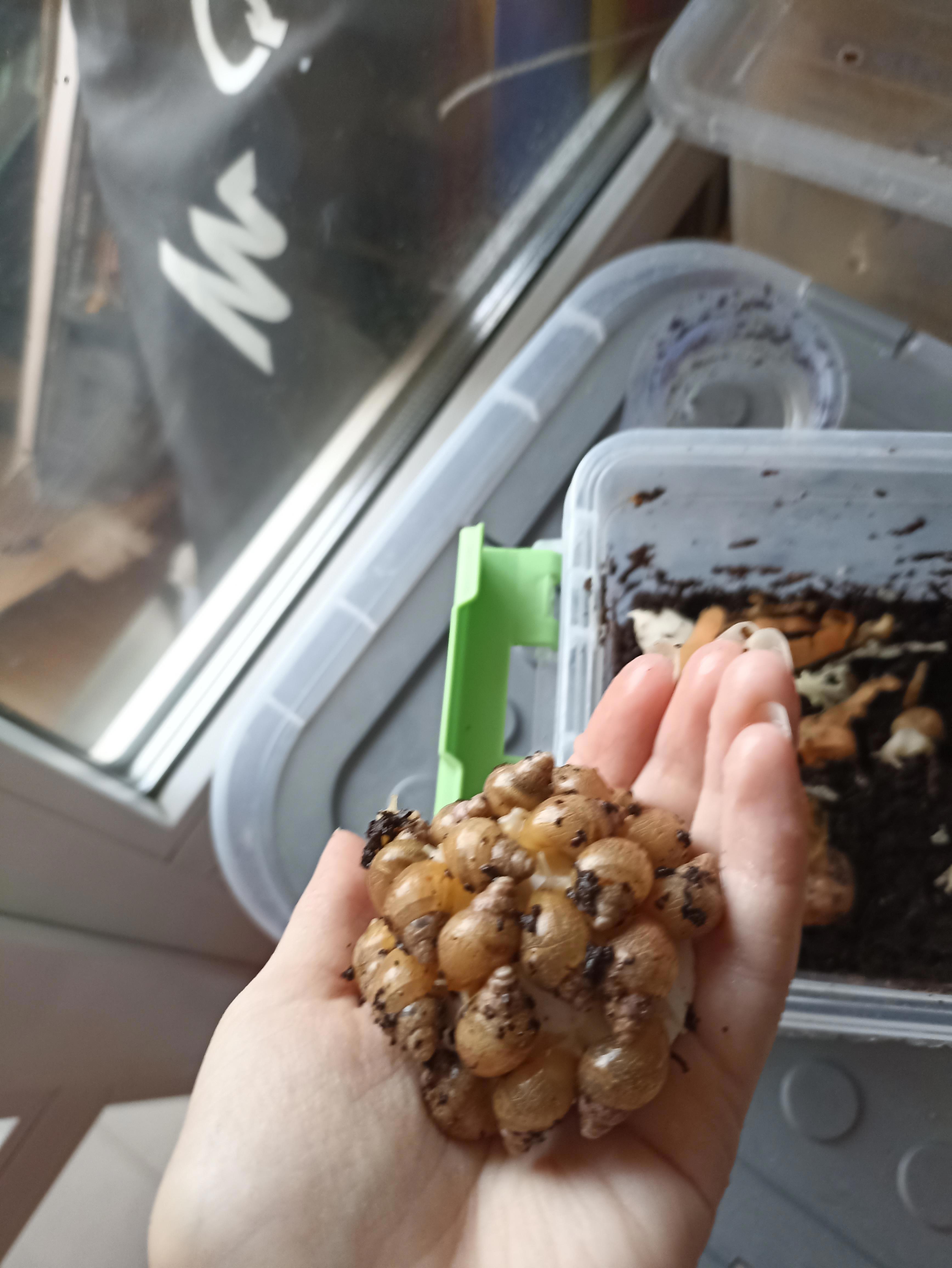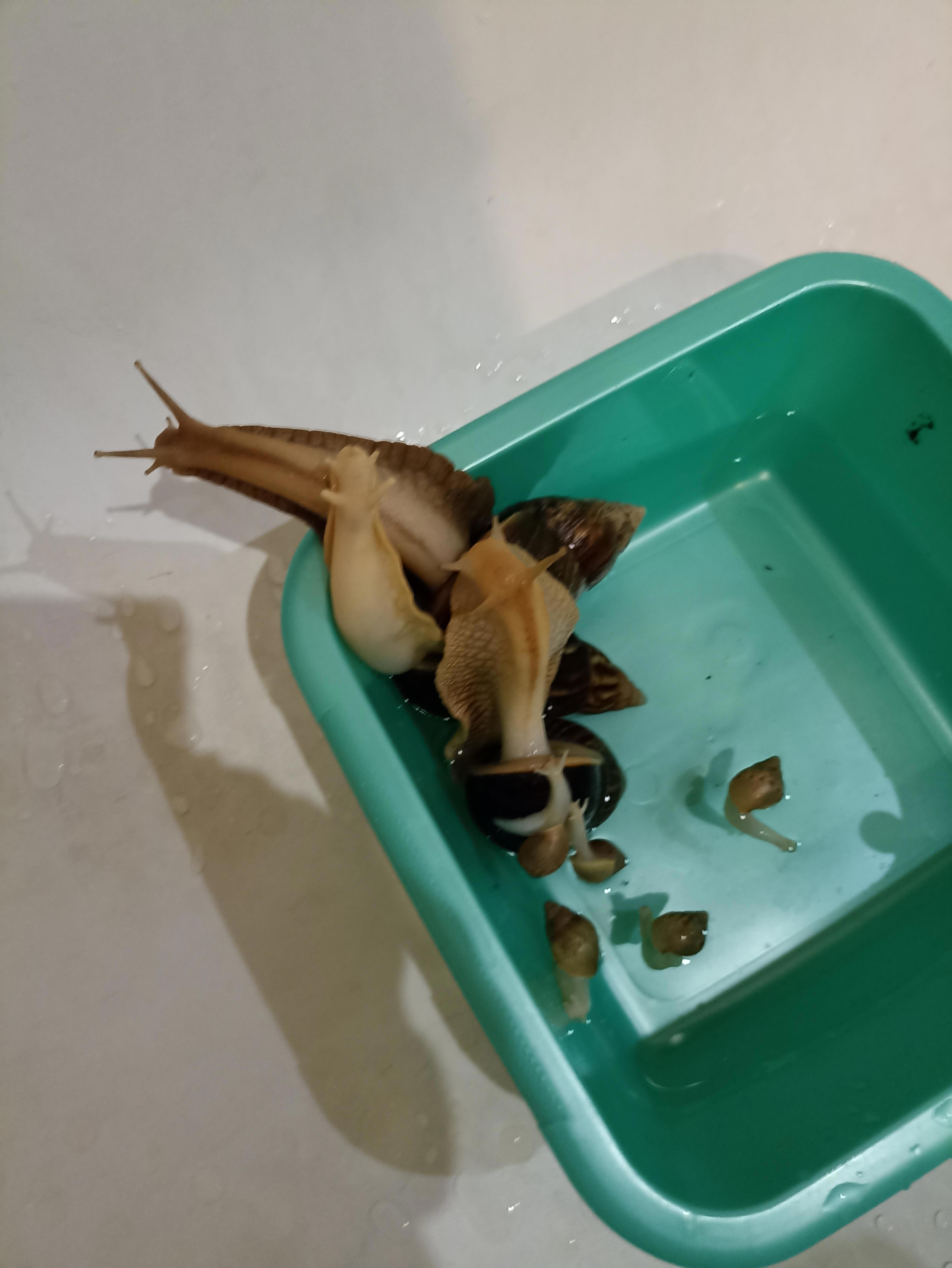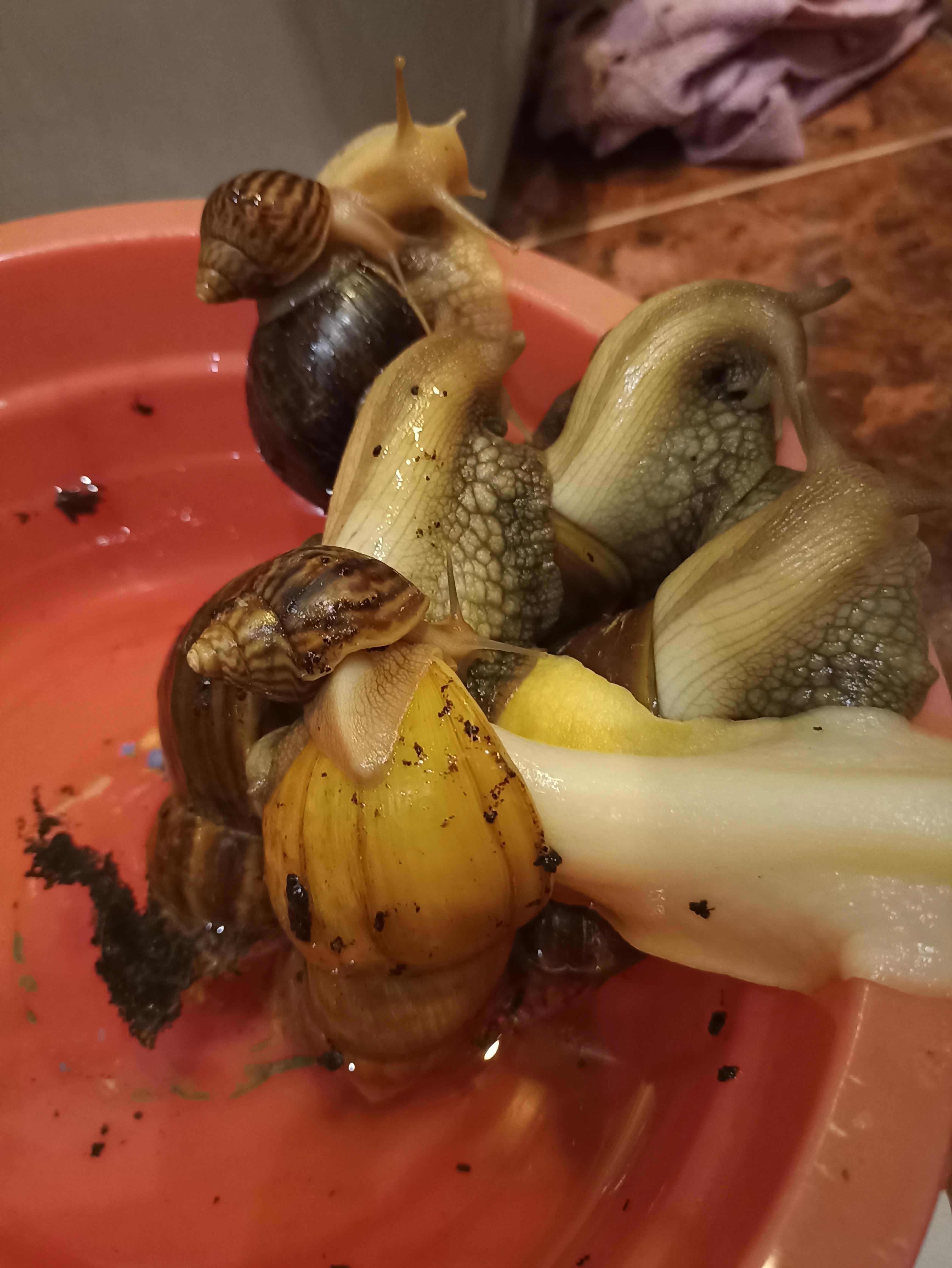 У меня их сейчас четыре вида: архахатина маргината, ахатина ретикулата и два подвида ахатины фулики: альбино боди и родация.