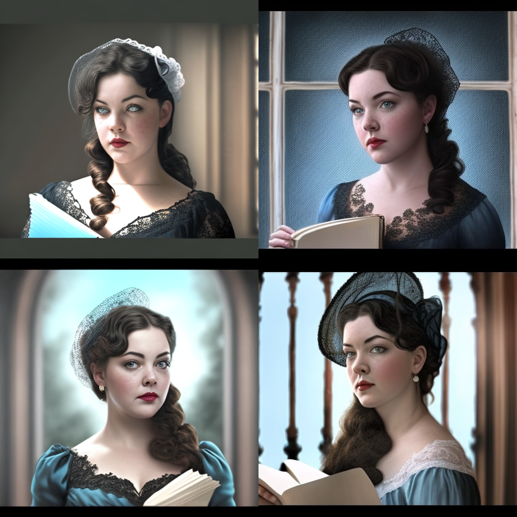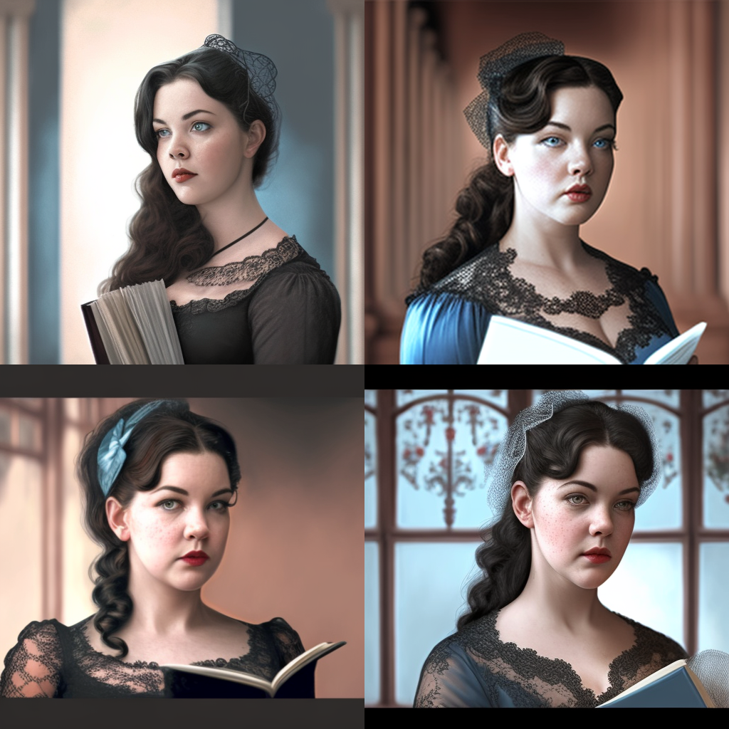 Но я не ищу лёгких путей. Мне интересней попробовать сделать тройку героев из "Неоконченного романа" или "Противоположные берега". Вот тут я немного сломала мозг, как описать героев. Мне не нужно аниме и фентези. Вроде как реализм. Но потом, с пятой попытки добавила слова персонаж книги. Потом он отказывался делать улыбки где надо, а вот где не надо вставлял. Усы, он тоже не понимает, сразу плюсует бородку.