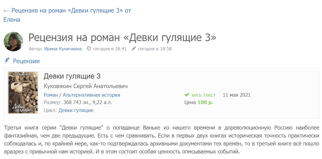 Так вот. Сегодня на мой старенький роман рецензия вышла. На третьих "Девок гулящих".